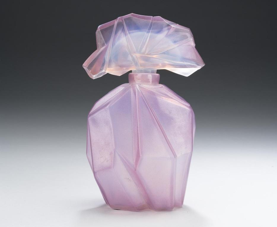 Consolidated Lamp & Glass Co. (manufacturer), Reuben Haley (designer), Ruba Rombic toilet bottle, 1928–1932, glass. Carnegie Museum of Art, James L. Winokur Fund and the Elizabeth A. Drain Fund.