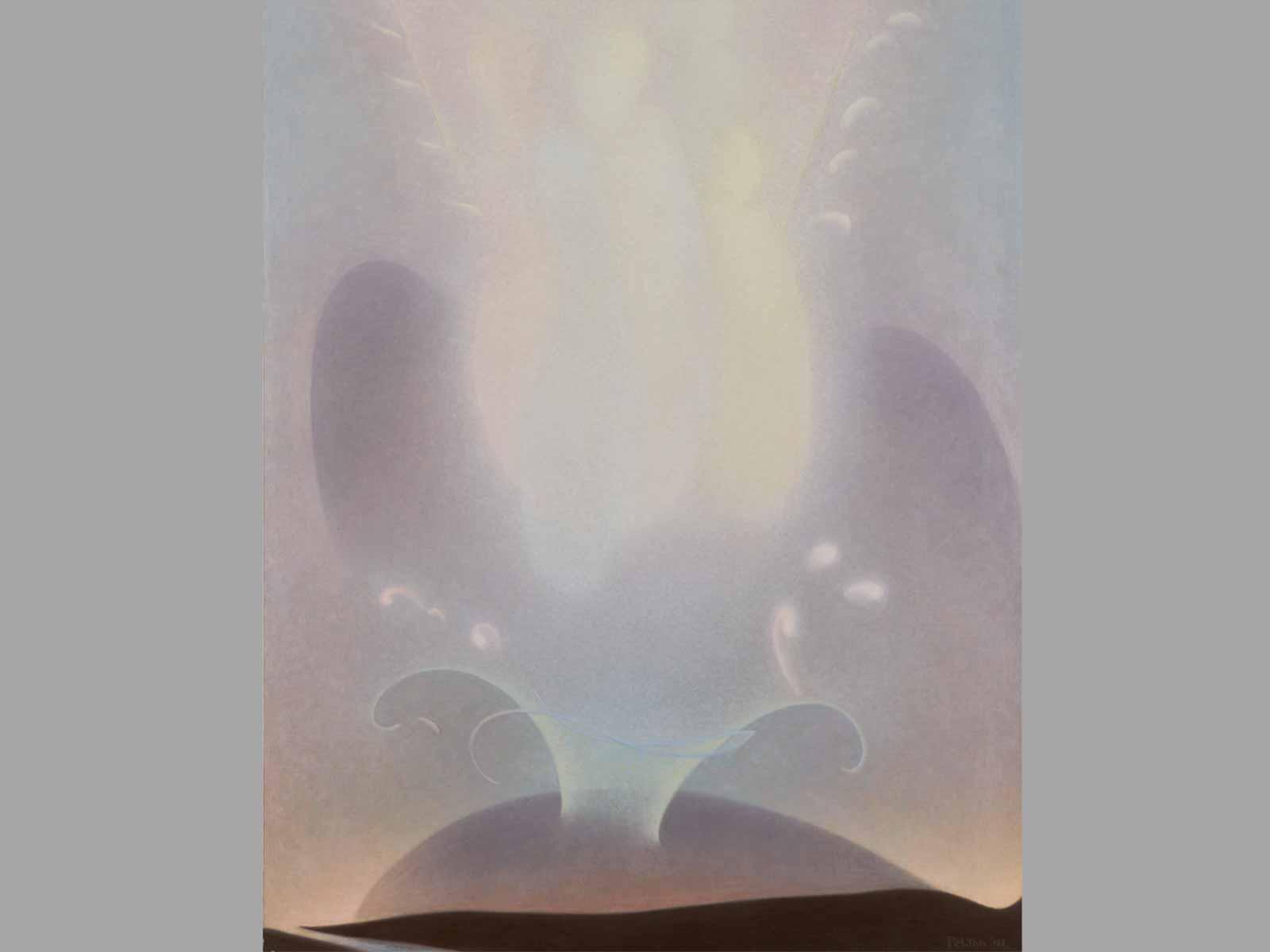 Few outside of Cathedral City, California, noticed when Agnes Pelton died in 1961. Although her close community of friends and neighbors mourned the artist who had painted compelling works that reflected her intensive studies of esoteric beliefs, the art world had largely ignored her visionary compositions. Many who did remember her work were only familiar with Pelton’s more conventional desert landscapes that she painted to support herself.