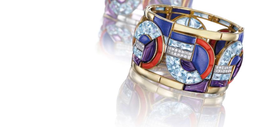 “It’s like wearing the Empire State Building on your wrist,” said Rahul Kadakia, international head of jewelry for Christie’s, during the pre-sale viewing of the Art Deco bracelet designed by Georges Fouquet and A.M. Cassandre. His reference to one of the classic examples of Art Deco design evokes the underpinnings of the period as seen in this bracelet in particular. This masterpiece of design and craft was one of a collection of jewels the two men created together for the Paris Exposition of 1925, known as L’Exposition des Arts Decoratifs, or Art Deco. The fair was intended to bring together the finest examples of that era across the design spectrum.