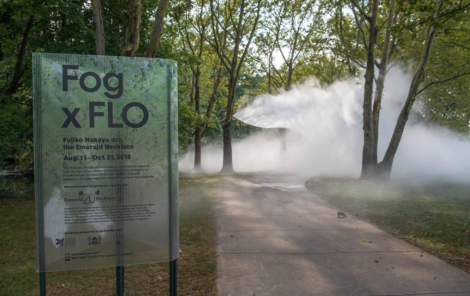Much of the early work in this direction, like British sculptor Andy Goldsworthy’s earthworks, was created in response to a specific site with the understanding that the art would eventually melt away, worn down by the elements. Environmental concerns play an important role to many artists who create work today that may disappear tomorrow. Jen Mergel, Senior Curator of Contemporary Art at Boston’s Museum of Fine Arts from 2010-2017, was responsible for acquiring their first piece of performance art. She has spent much of her curatorial career on expanding understanding of contemporary practices of sculpture. In a recent interview, she discussed her engagement with Japanese artist Fujiko Nakaya who utilizes fog as her sculptural medium. Mergel defined the parameters of ephemeral art this way: “I believe there is a significant difference between temporary and truly ‘ephemeral’ art: one can be recreated and the other can never be repeated, never the same twice. Truly ephemeral art—like the short-lived mayfly the Greeks termed ephemeron—is born to expire, enacting the cycle of composing and decomposing all at once. This is a natural cycle that few artists have effectively generated to meaningfully present.” Mergel indicated Nakaya was an authentic example and Fog x FLO, a public art piece shepherded through the curatorial process by Mergel, epitomizes all that is implied by the label ephemeral. The exhibition Fog x FLO consisted of five sites in Boston’s historic urban park system to mark the twentieth anniversary of the Emerald Necklace Conservancy’s stewardship of the landmarked chain of public spaces designed by Fredrick Law Olmstead (FLO), the founder of American landscape architecture. The fact that the Conservancy opted for a slice of disappearing atmosphere as a historical marker, rather than a bronze statue of, let’s say, Olmstead riding a horse, speaks volumes about how ephemeral art is valued, and how far we collectively as a society have come in our understanding of what we say is art. Other major institutions, like the Tate Modern in London, the Guggenheim Bilbao in Spain and the National Museum of Australia have also sponsored Nakaya’s fog sculpture.