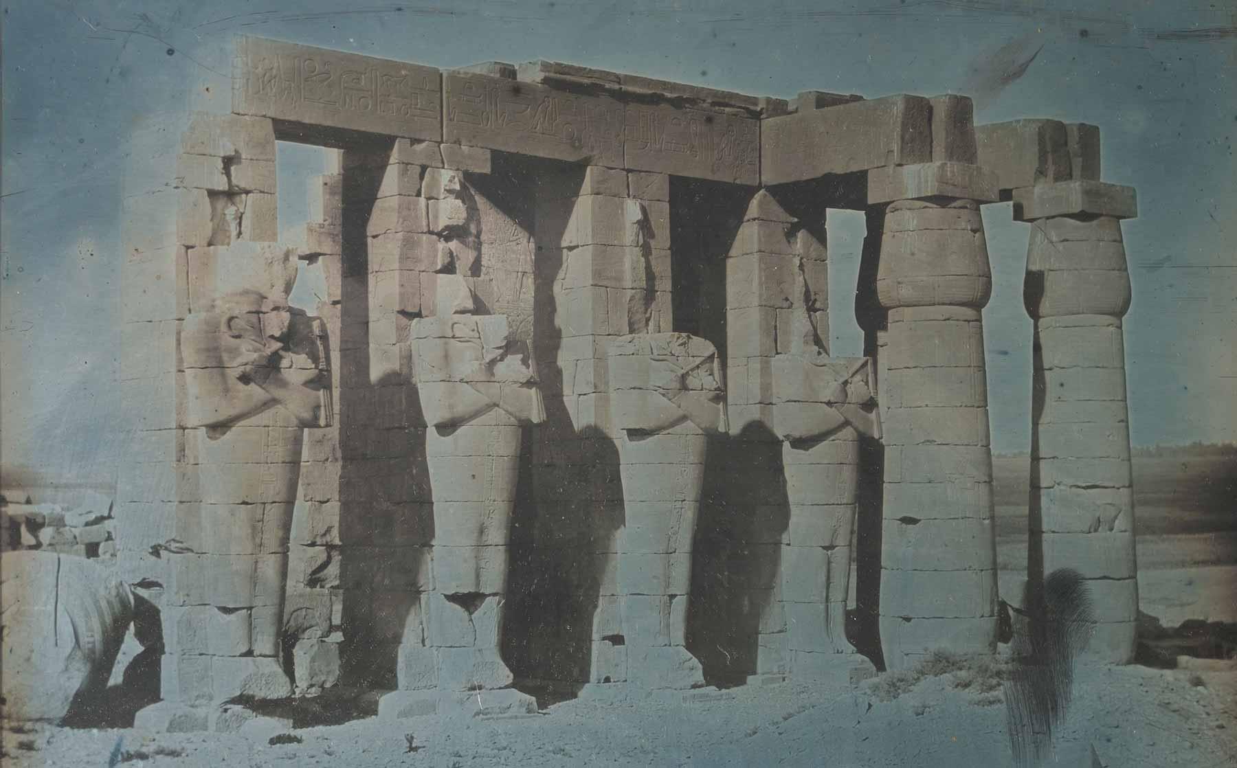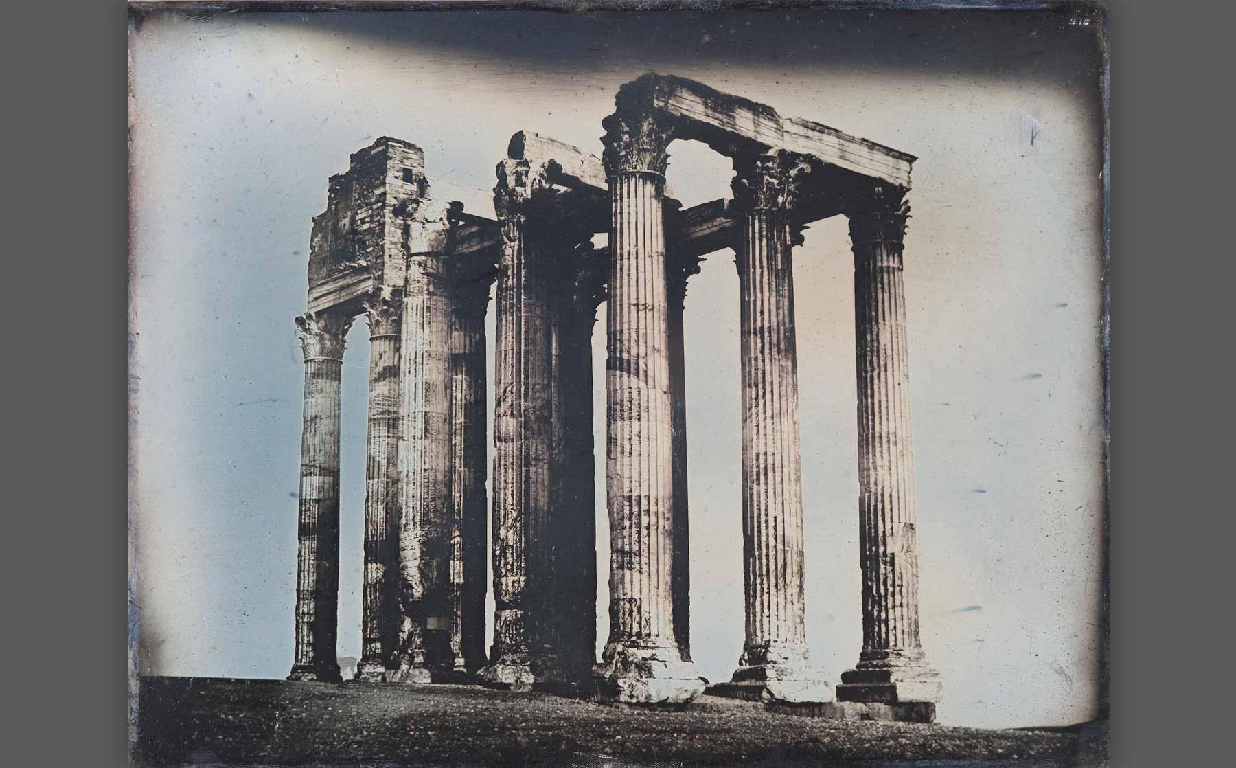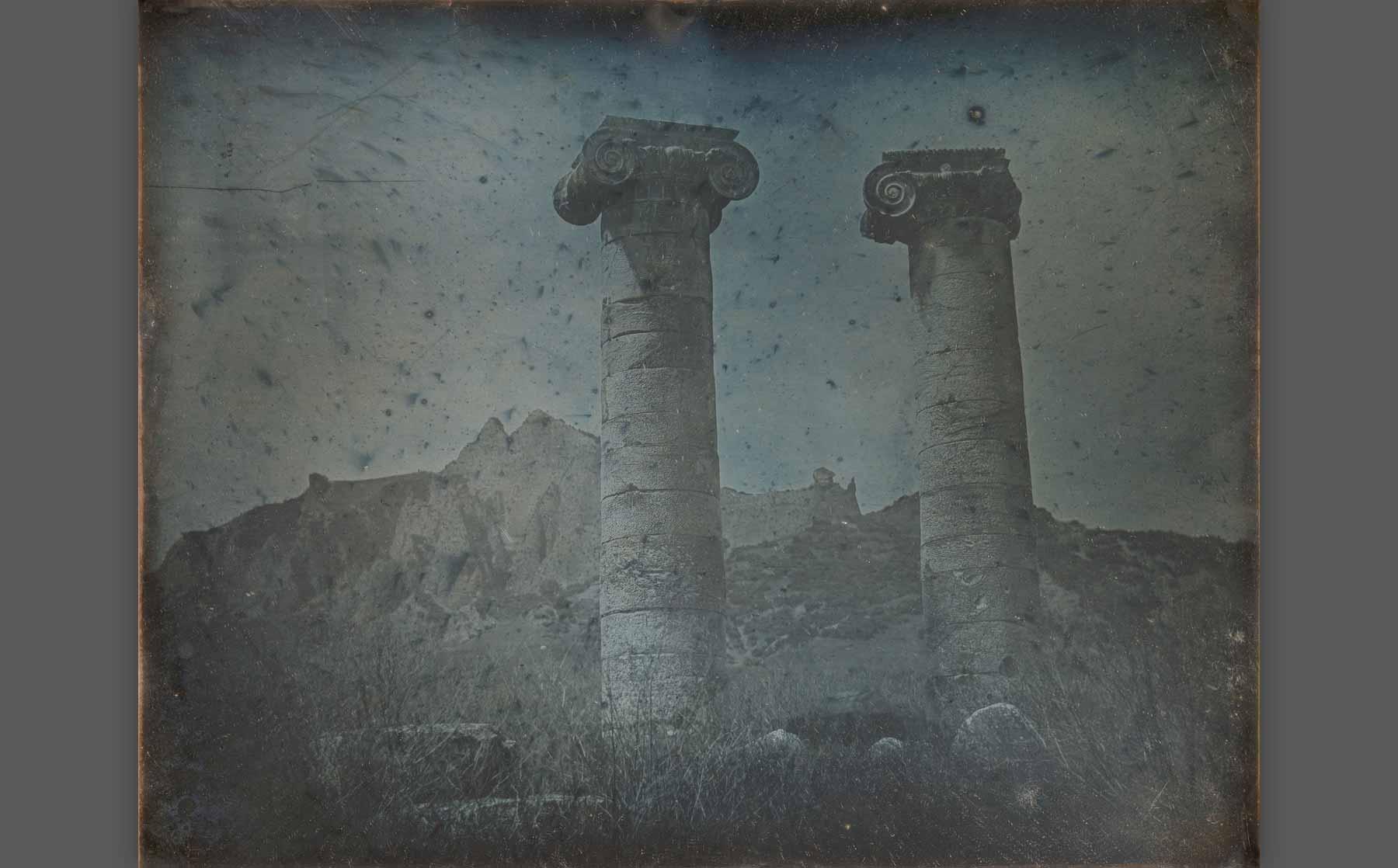 He created hundreds of photographic images on silvered copper plates, many the first such documentation of these sites. Today, they offer glimpses of places now altered, like the Acropolis before the Byzantine, Frankish, and Ottoman structures were torn down after Greek independence, and Pompey’s Column in Alexandria marred with graffiti that was later removed. Others are now destroyed, such as portions of the ancient city of Aleppo, Syria. Despite the importance and innovation of this work, Girault’s legacy has long been obscure.