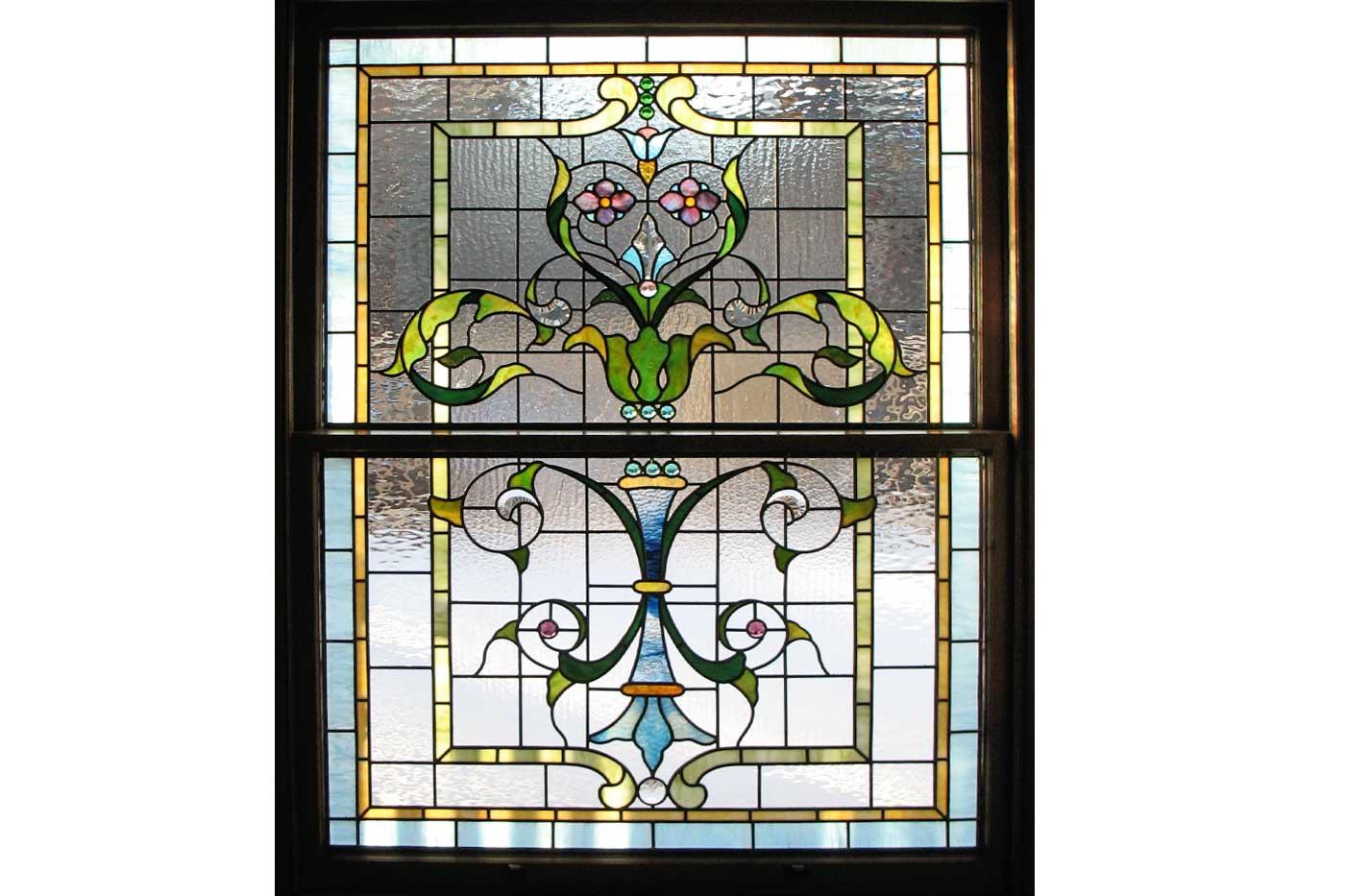 Wolff’s designs incorporate a variety of glasses. To add privacy and decoration, she uses German roundels—glass discs, blown on the end of a pipe, and spun.