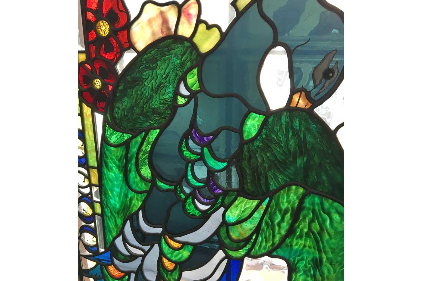 To create the effect of fabric or flowers, she uses pleated drapery glass she cuts with her diamond saw won in a glass art competition. “You have to decide where the folds go,” she said. “Tiffany used it a lot, and John LaFarge.”