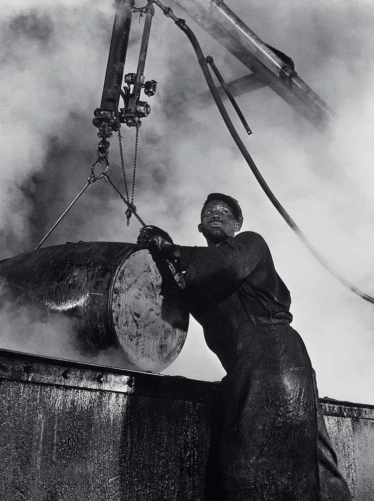 A young Gordon Parks photographed this work at the Penola, Inc. grease plant in Pittsburgh, Pennsylvania, in 1944 and 1946, visualizing the people operating the world’s largest facility of this kind in the world. The clarity and humanity in these images—where the heat and the grime of the plant are vividly present—show one of the twentieth century's preeminent photographers of life in the United States using the camera to honor the individuals undertaking these jobs without overlooking the intensity of their toil.