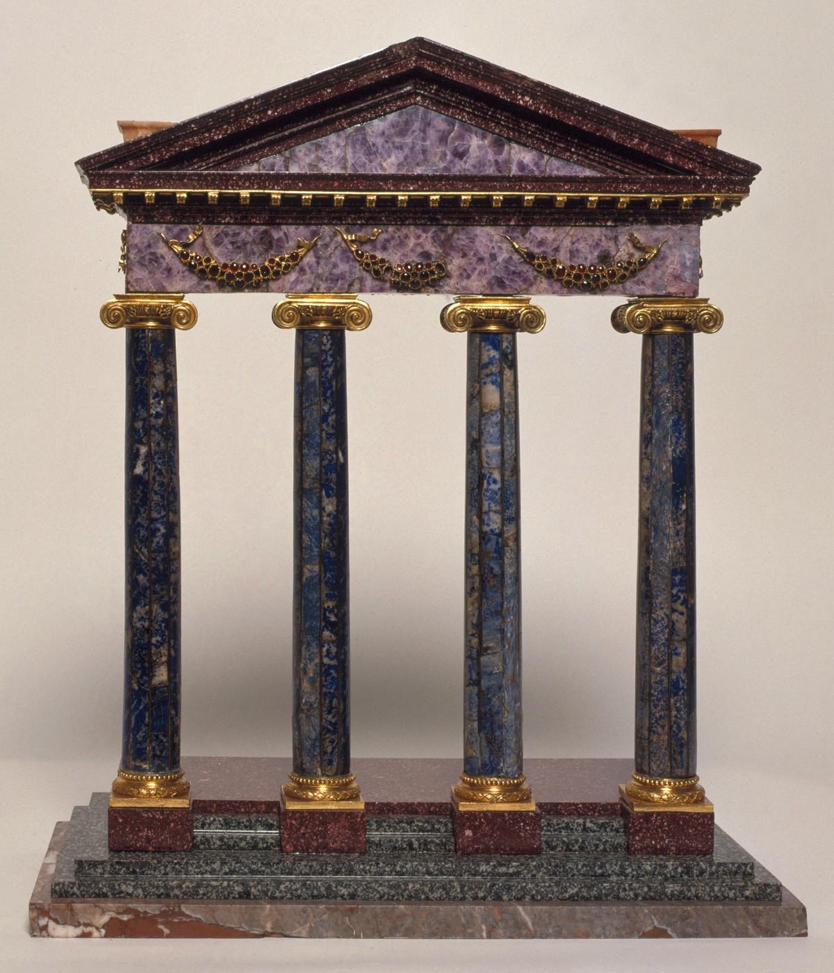 Today, Valadier’s name is no longer prominent. Much of his elaborate metalwork was melted in the decades following his death. A small 1783 spoon adorned with the face of Medusa, for instance, is one of the few extant pieces from a huge silver service he crafted for Rome’s Borghese family. Others, like his bombastic desers, were broken apart. For Luigi Valadier: Splendor in Eighteenth-Century Rome, on view at the Frick in New York in 2018, Breteuil’s deser, now divided between two institutions in Spain, was reunited. Over fifty objects and drawings joined it in visualizing what survives from Valadier’s oeuvre, with drawings and inventories hinting at what has been lost.