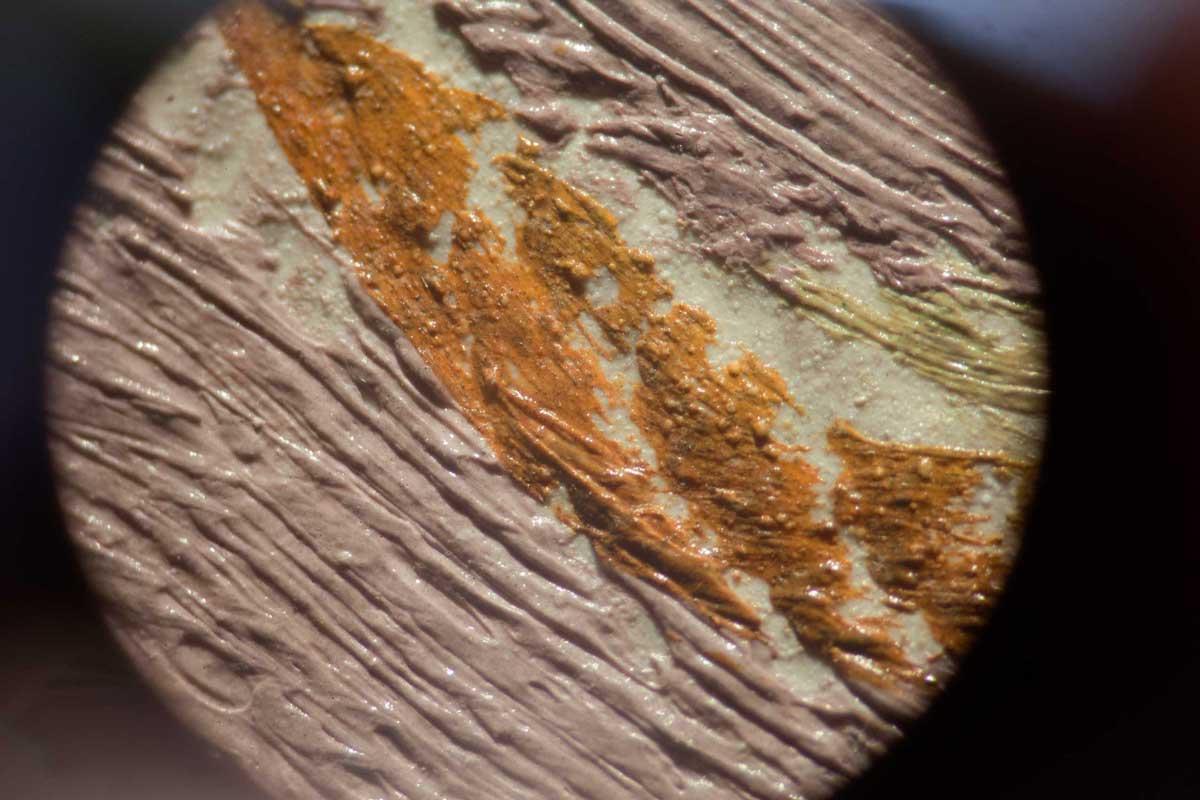 As head of Conservation for the Georgia O’Keeffe Museum in Santa Fe, New Mexico, the museum had only been open for three years, when he began to notice small grains in the paintings, not uniform in shape or appearance. As a result, these particular O’Keeffe paintings began to look darker, the colors less vibrant. “I asked some of the curators about it and they told me it was thought that O’Keeffe added sand to some of her paintings when she moved to the area,” he says.