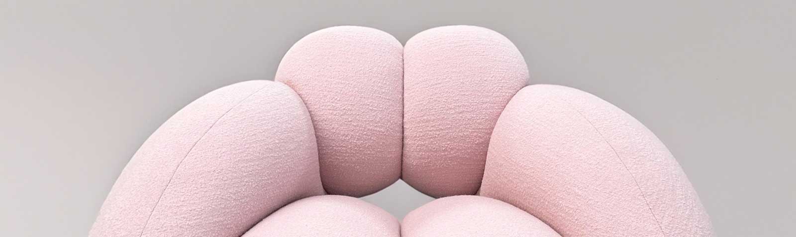 The pieces in the exhibition not only partake in a dialogue with function, but contrast with one another along a spectrum of the sculptural. "Enthroned" features pieces like Lara Bohinc’s Derriere Chair (2023) along with pieces from Najla El Zein’s Seduction series (2018). Bohinc, who was inspired by mid-century Italian upholstery, transitioned into the world of furniture after a decade of design consulting for Cartier. El Zein takes a more sleek approach, frequently using Italian limestone as her choice of material. In 2022, the Qatar Museum commissioned two public works by El Zein, one of which, Us, Her, Him, features a winding cylindrical bench over 1,000 feet long, and represents human connection.