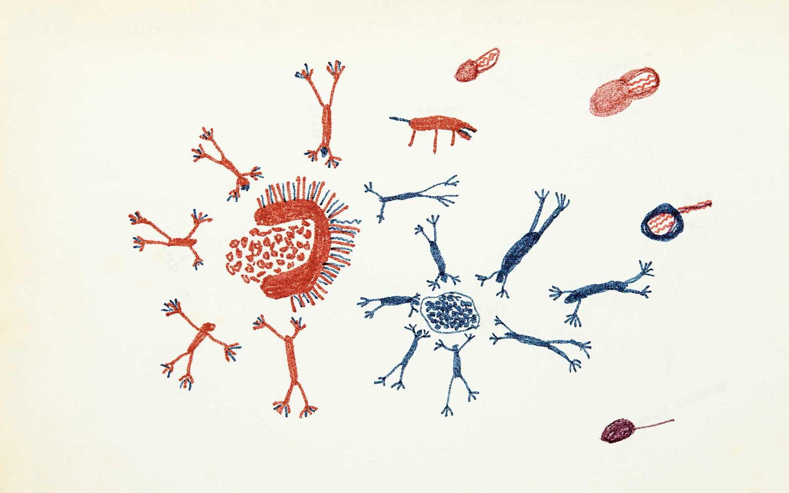 Joining Adujar in this fight to control their territory and their basic human rights is shaman and Yanomami leader Davi Kopenawa (b. ca. 1956, Mõra mahi araopë community, Marakana region). He serves as a guide to assist in the interpretation of the vision of Yanomami life as presented through these artists' works. His drawings and quotes from his book The Falling Sky: Words of a Yanomami Shaman (co-authored with anthropologist Bruce Albert, The Belknap Press of Harvard University Press, 2013) are included throughout this exhibition.
