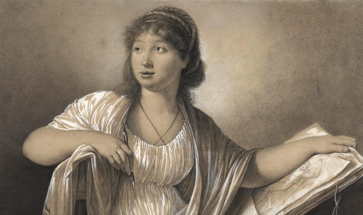 Anne Gueret, Portrait of a Female Artist with a Portfolio (Self-Portrait?), 1793. Katrin Bellinger Collection.