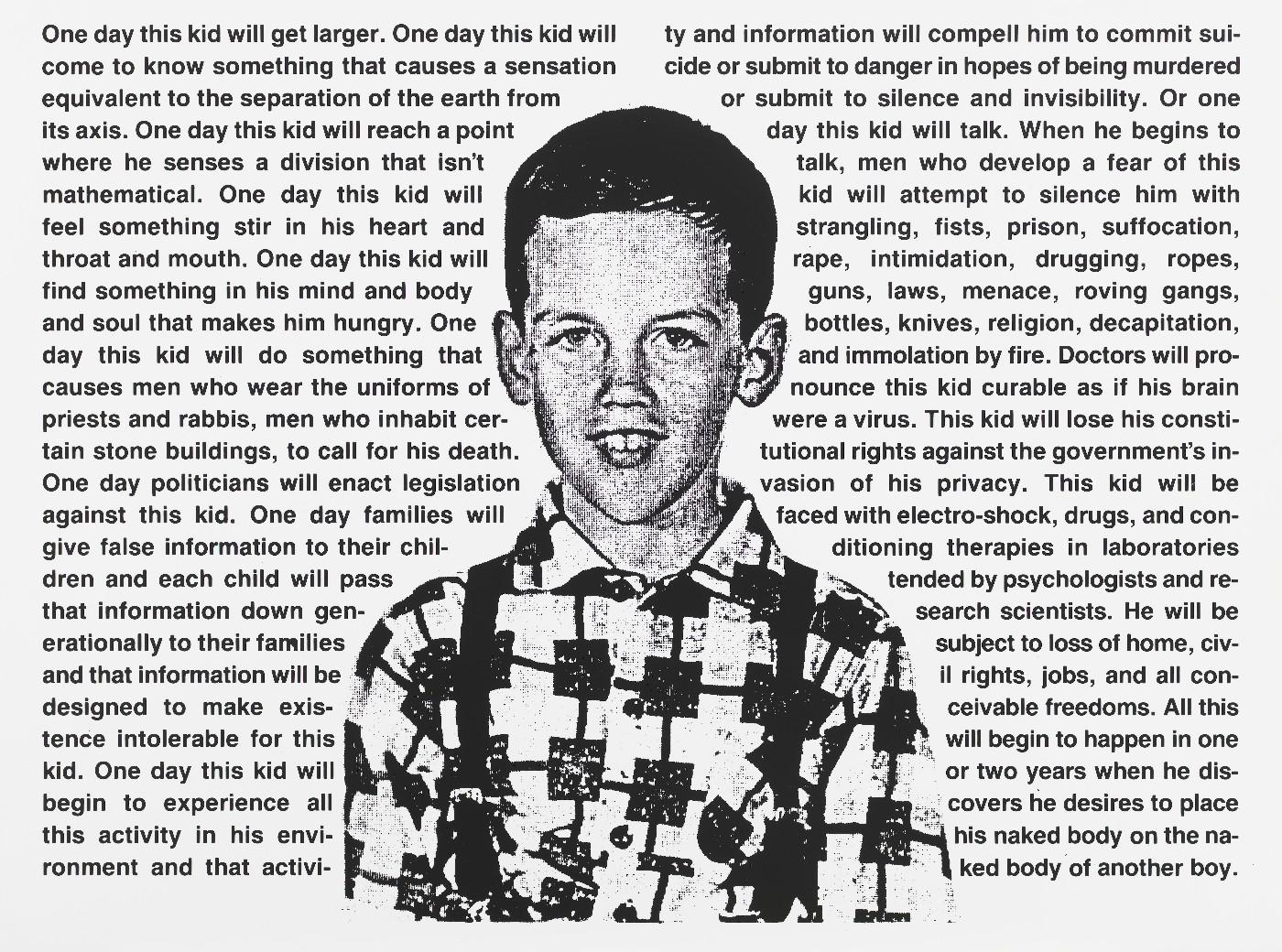 David Wojnarowicz, "Untitled (One day this kid . . .)," 1990. Photostat, 30 × 40 1/8 in. (76.2 × 101.9 cm). Edition of 10. Whitney Museum of American Art, New York; purchase with funds from the Print Committee 2002.183.