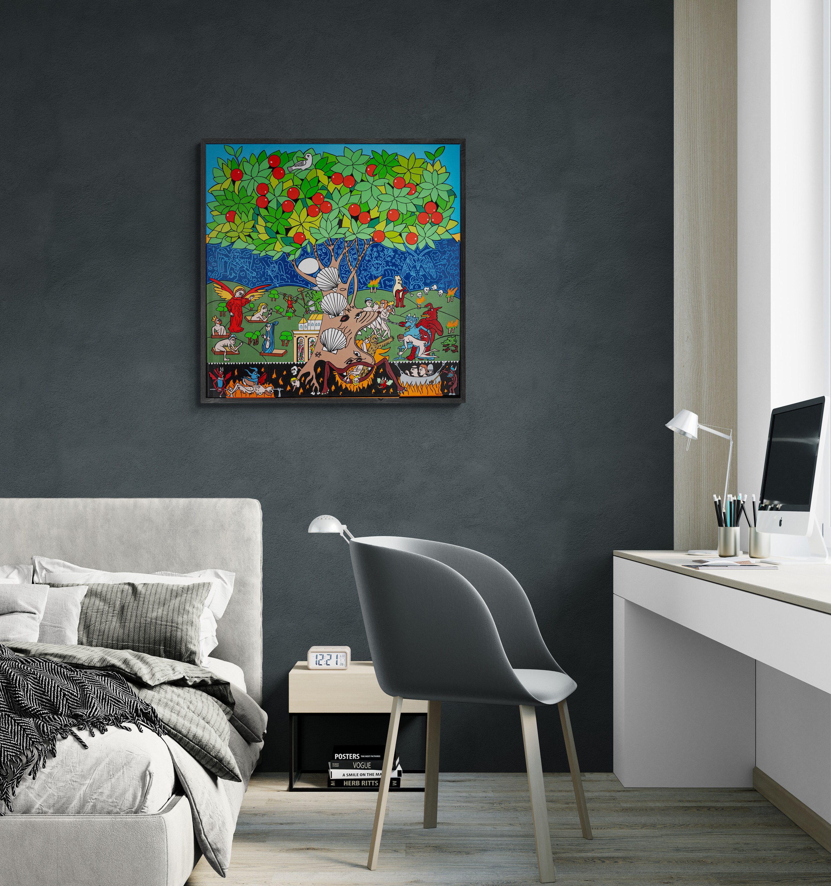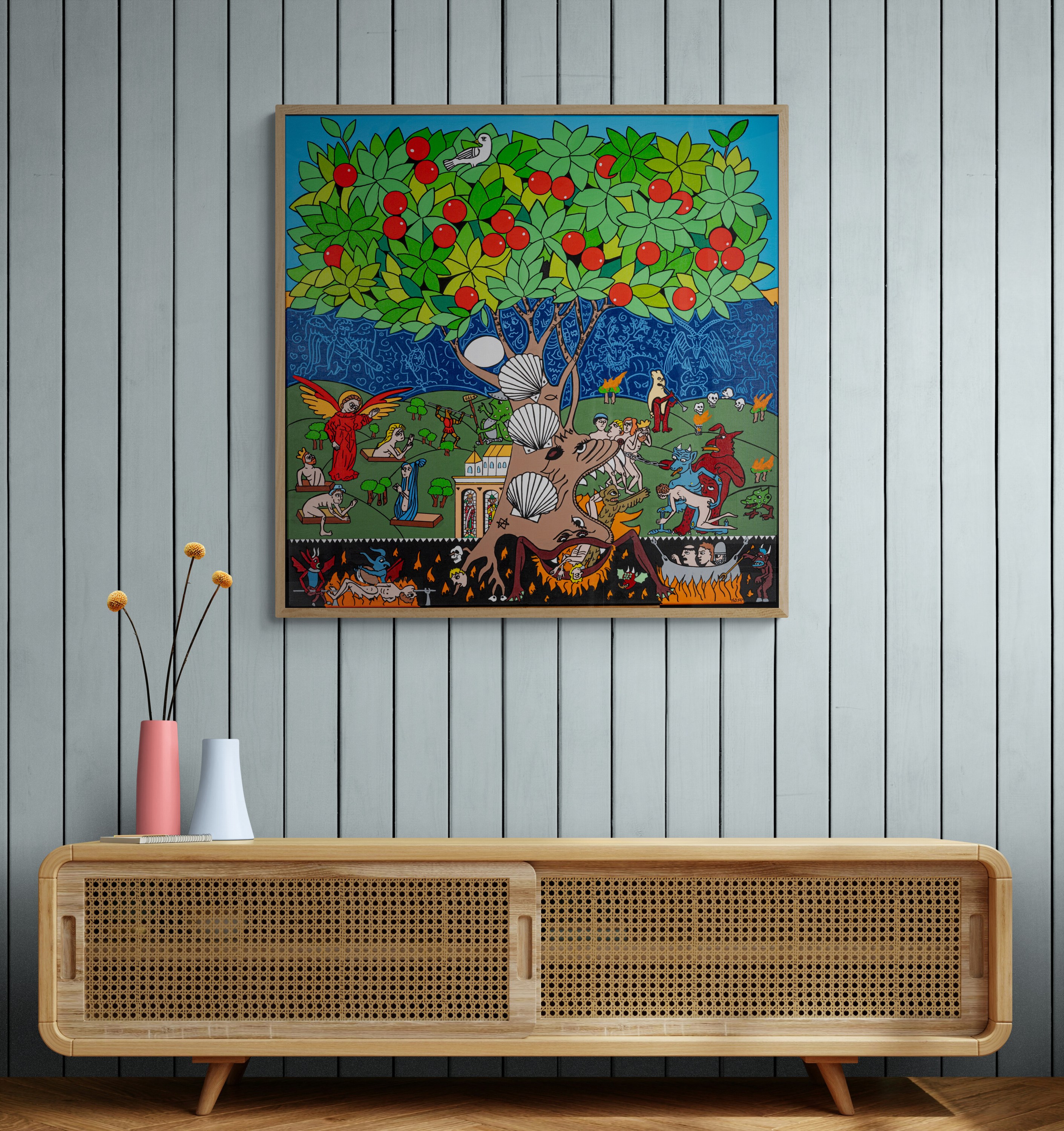 Inspired by art movements like pop art, figurative art, graffiti, and graphic design, Verhoeven’s love for history, literature, and music often fuels his creativity. His paintings are rich with symbols and references to significant events and figures in history, inviting viewers to uncover deeper meanings.