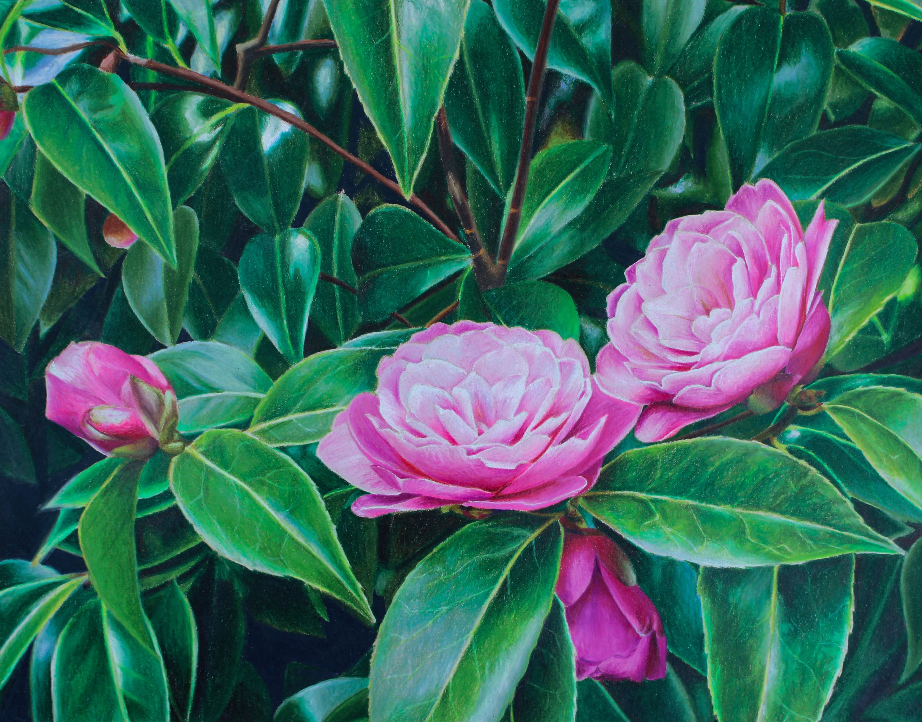 Maria Deely captures the enchanting beauty of Blarney Castle’s gardens in this vibrant colored pencil drawing. Inspired by her travels to Ireland, Deely translates the lush, fragrant spring landscape into a vivid study of color and texture. Her work reflects both a personal connection to place and an admiration for the meticulous care of the castle’s gardeners. Through layered hues and delicate detail, she invites viewers into the heart of Blarney’s floral splendor—an intimate glimpse of nature’s artistry rendered through her own.
