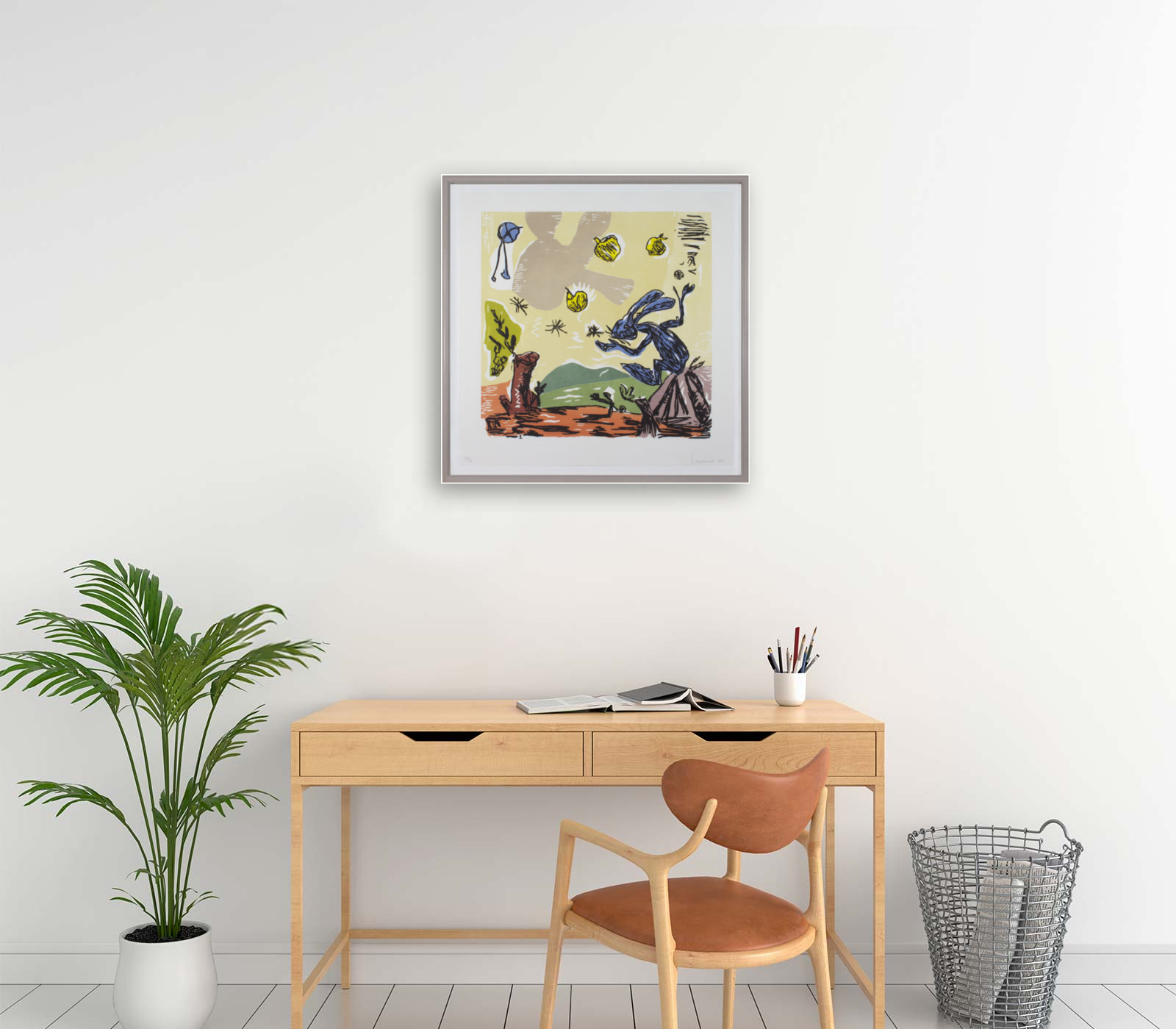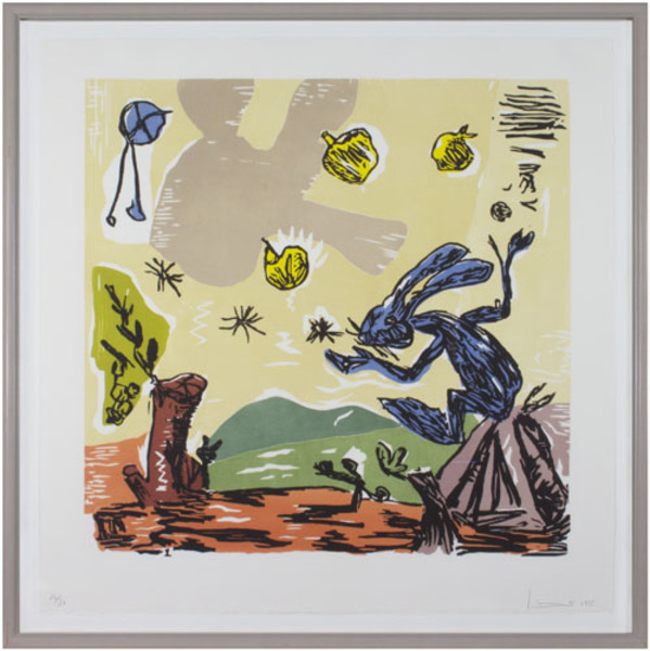 Santiago Moix (b. 1960) works in a vein that recalls the styles of some of history’s other great Spanish artists, such as Pablo Picasso and Joan Miró. He mines literature and Art History for scenes that provide points of departure for his fantastical abstractions. He has created work in a wide variety of media, though he is known primarily as a printmaker and painter. He was awarded a John Simon Guggenheim Memorial Foundation fellowship in 2002. Moix currently divides his time between Barcelona and New York City.