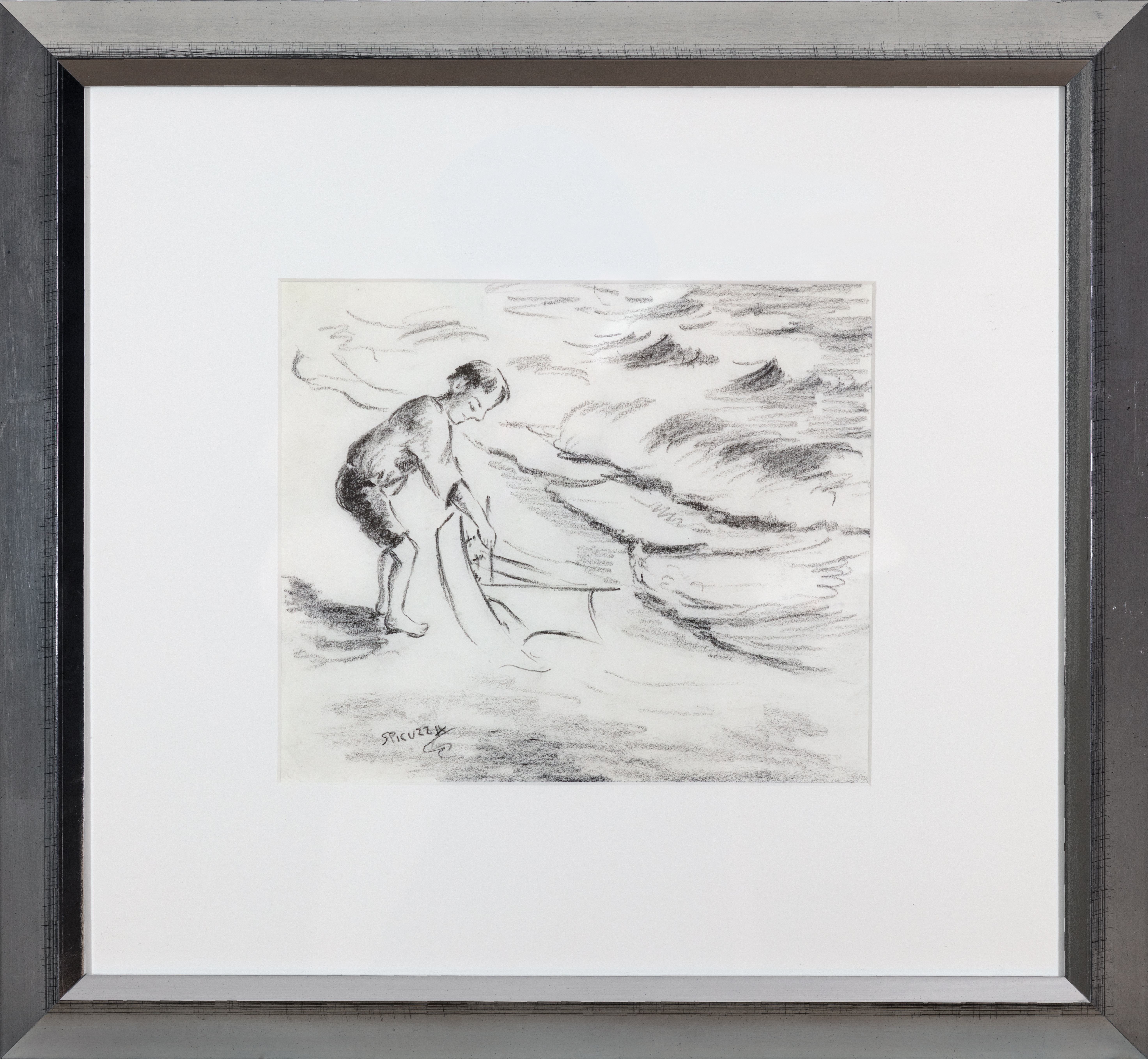It was during this time that Spicuzza changed his style of painting, developing an impressionistic use of color, form and atmospheric renditions. After a period of grinding poverty, one of Spicuzza's pictures won a major New York competition. It was the first of 60 wins, both in the U.S. and Paris. He became a fashionable painter, and many of the leading collections have his work. Spicuzza's typical works were beach scenes, still life, landscapes and portraits done in pastels, oils, ink, charcoal and watercolors. Much of his work traced the history of Milwaukee in the early 1900s. He was probably best known for his scenes of women and children splashing in the waves at Bradford and McKinley beaches.