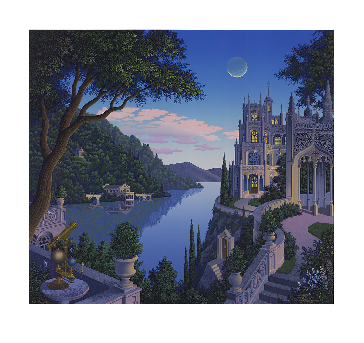 An American artist known for his highly stylized landscapes inspired by regional artists like Grant Wood and Maxfield Parrish, but especially the dream landscapes of Henri Rousseau.