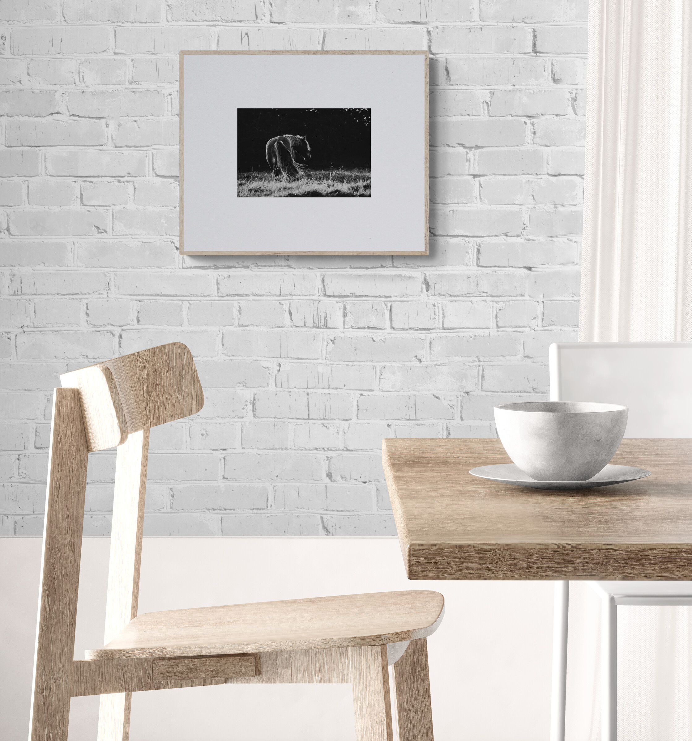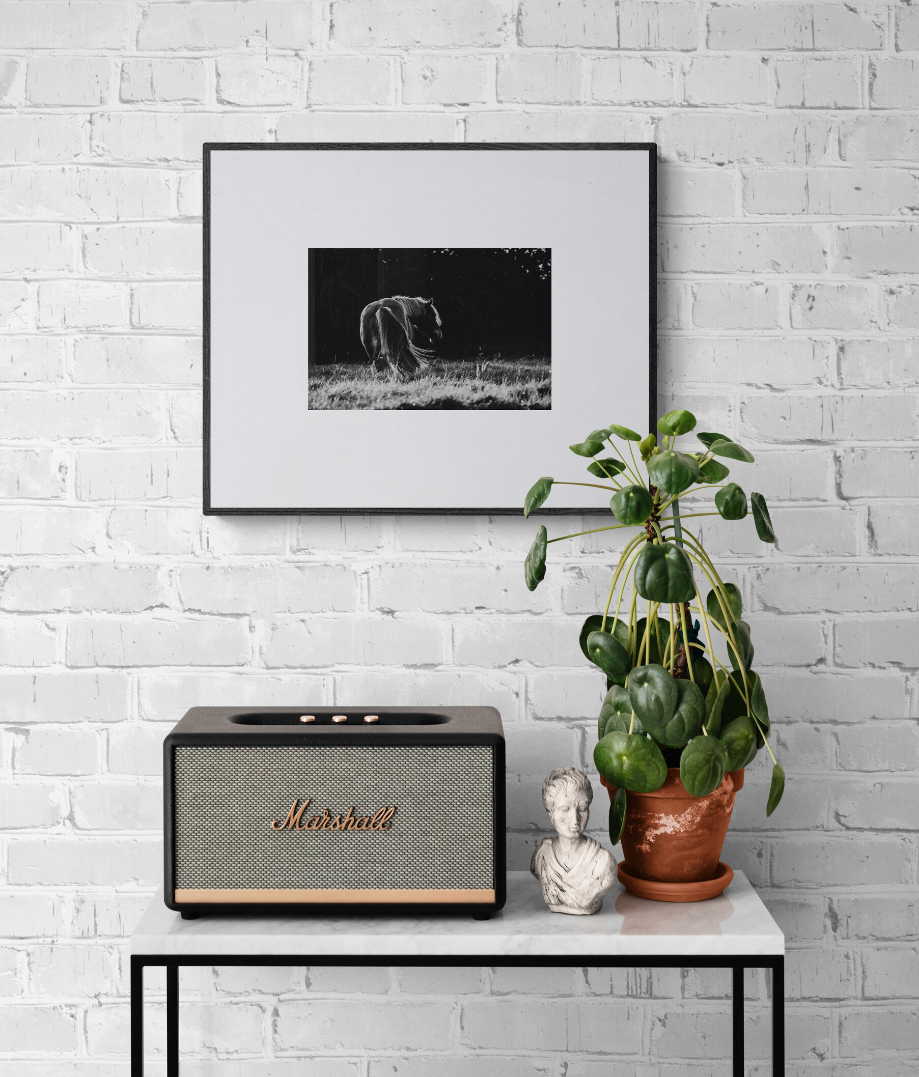 Onyx Grace is a photography-based art installation that plays on the visual dialogue that takes place either in each picture seen individually or when all images are seen mounted together in an almost puzzle-like aesthetic. The work consists of five details of a stunning Spanish mare, photographed in a minimalistic yet rough manner on a neutral but textured background. When seen in an exhibition setting, the composition is dynamic, fluid, and solid. The piece comprises five images, four of which are square compositions symmetrically disposed around a central image that the photographer presents as a vertical composition. The 'Onyx Stone' referenced in the artwork title is often referred to as a stone of strength and assertiveness. It is said to help reduce negative energy and stress while providing a sense of calm and relaxation. At the same time, Onyx is also said to improve willpower and determination. To convey the similarities between the horse and the Onyx's symbolism, the artist plays on how she prefers to see the photographs in this work. When seen unfolding together, the five-image installation embodies calmness, willpower, and strength at the same time. Seen individually, each capture freezes the photographer's fascination with this special horse.