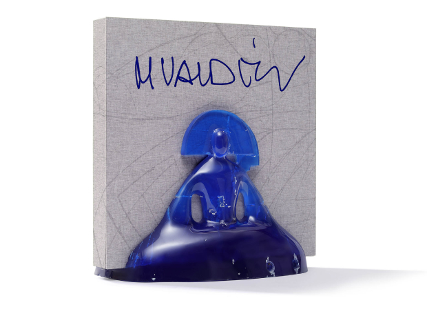 Materials: Crystal Polyester resin, wooden case lined with Dubletta 3255 fabric, screen-printed, contains two books.