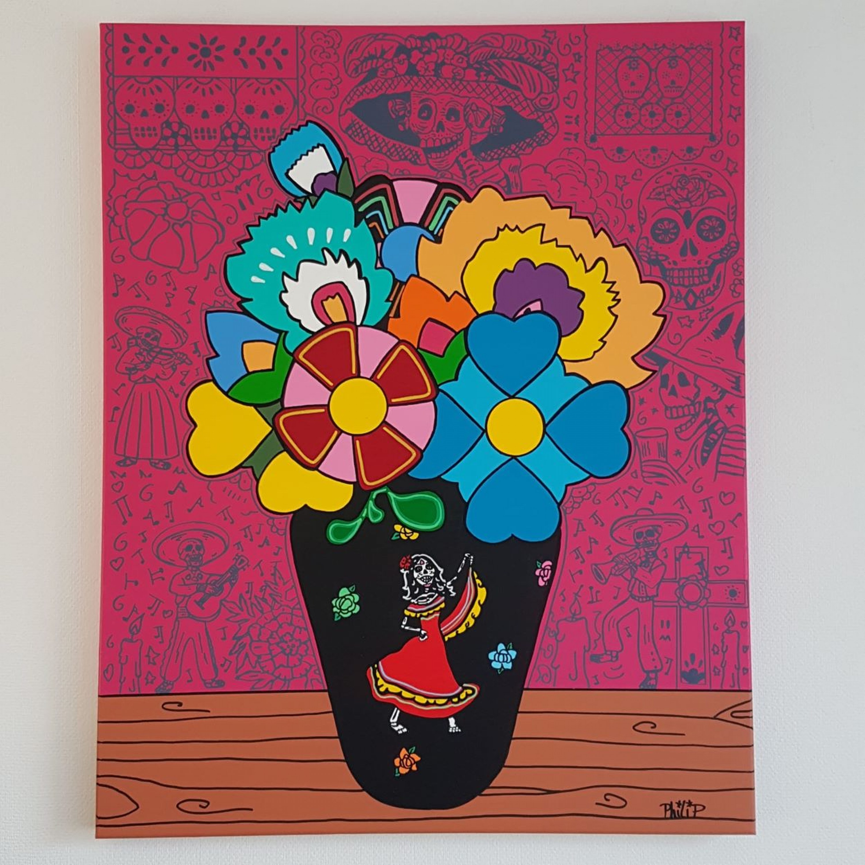 Tags: #DiaDeLosMuertos #MexicanFolklore #FlowerBouquet #SkeletonArt #DancingSkeletons #SingingSkeletons #MusicSkeletons #FolkloreArt #MexicanCulture #CelebrationOfLife #PhilipVerhoeven #Art #AcrylicPainting #FigurativeArt #PopArt #GraffitiArt #GraphicDesign #HistoryInspiration #ColorfulArt #PositiveVibes #SymbolicArt #ArtisticDepth
