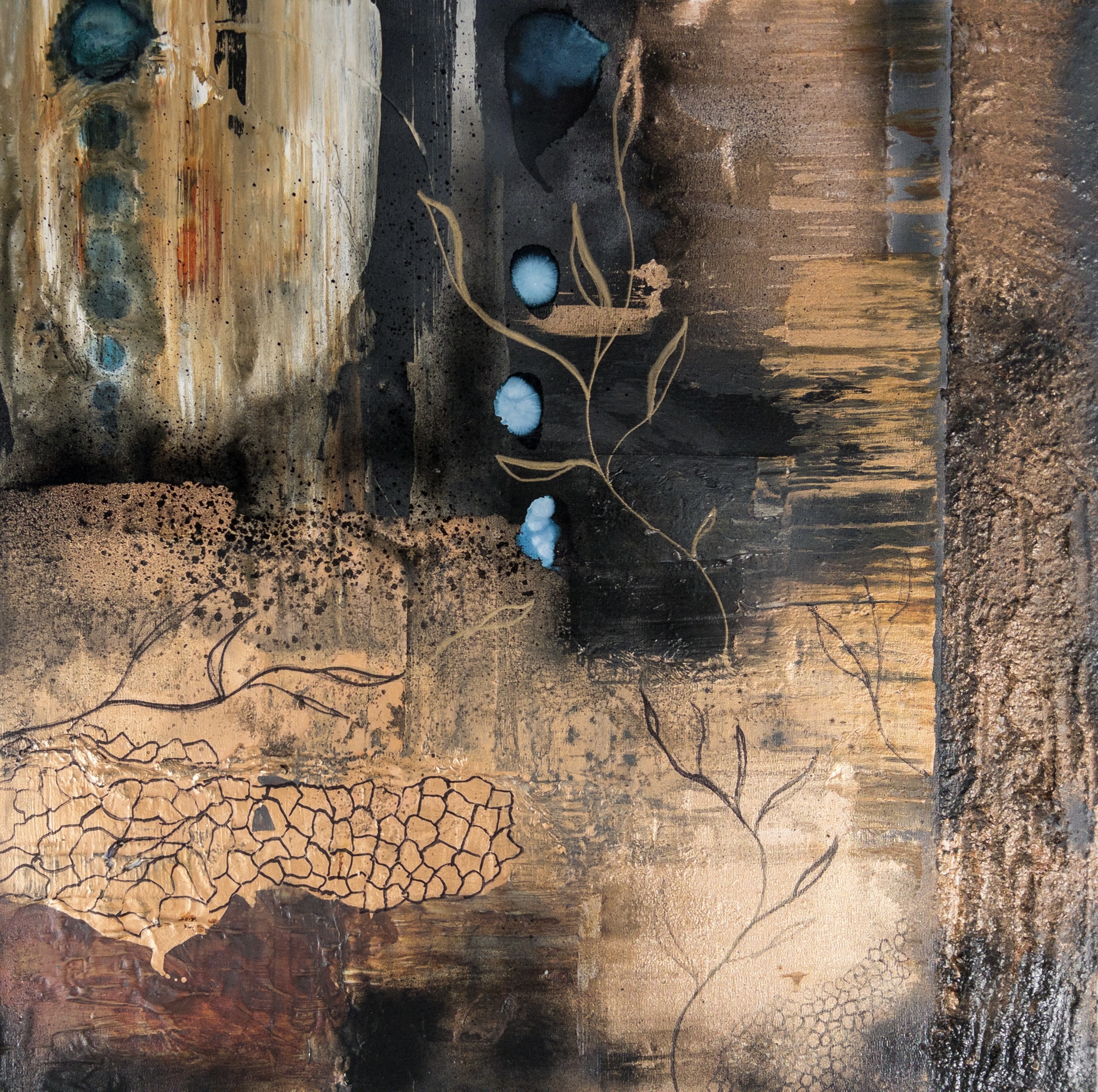 Materials: acrylic, ink, pumice, gold pigment powder on linen
