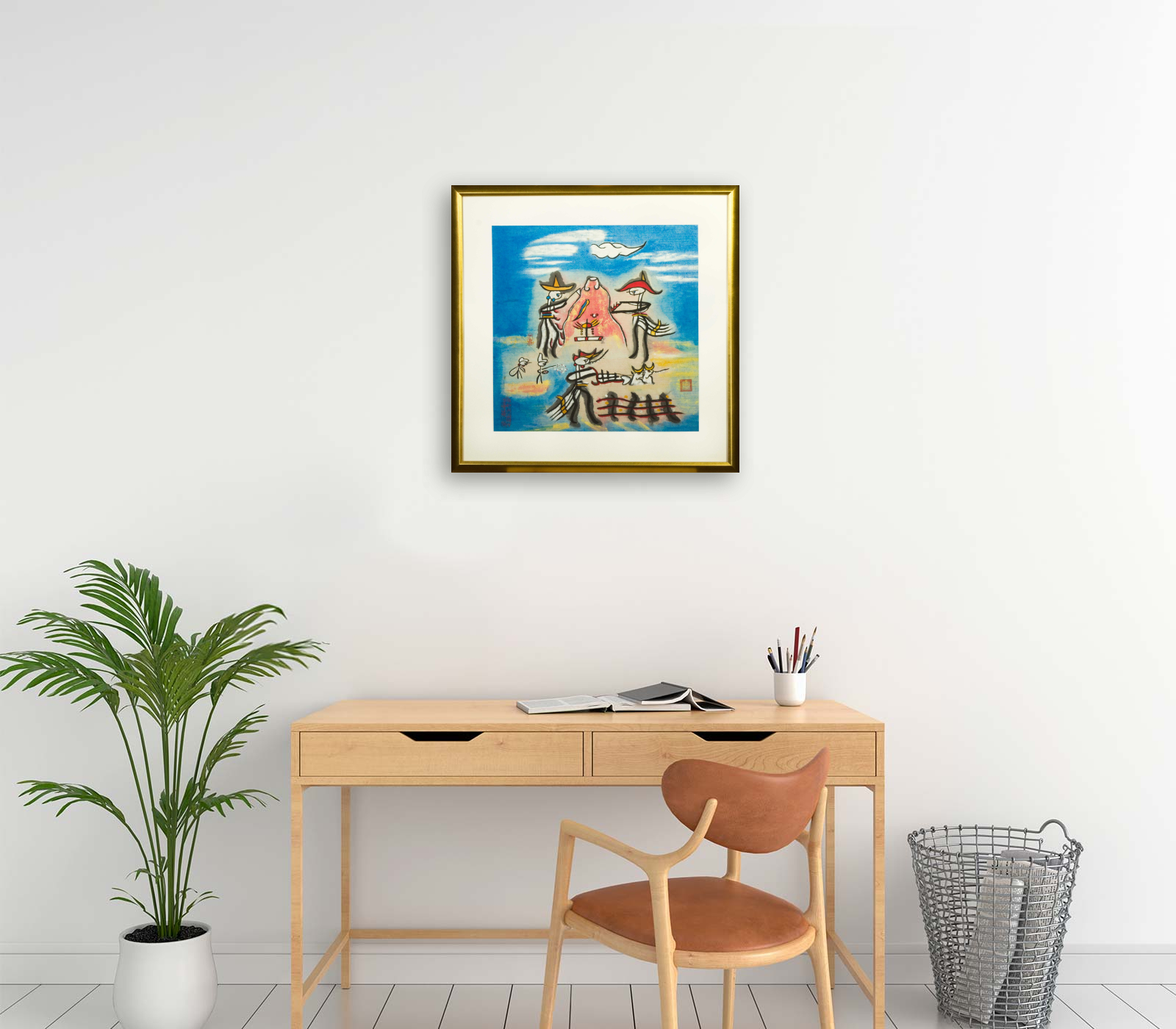 Born in the Yunnan province of China, Close to Tibet, Xiao Ming found her artwork on her beliefs and traditions of living with nature as a guardian and protector. These beliefs and traditions may have influenced Ming to favor colored inks, a gouache of sorts derived from mineral pigments bound by using animal glue, Ming's work is steeped in Chinese art history, influenced by the ancient scroll paintings depicting the mountains of China, Xiao Ming interprets the Chinese landscape juxtaposed with her own personages and figures. In addition to possessing a unique talent with natural art, Xiao Ming combines her quiet faith with a sense of aestheticism, holding them in a kind of symbolism that, to the western eye, remains shrouded in mystery.