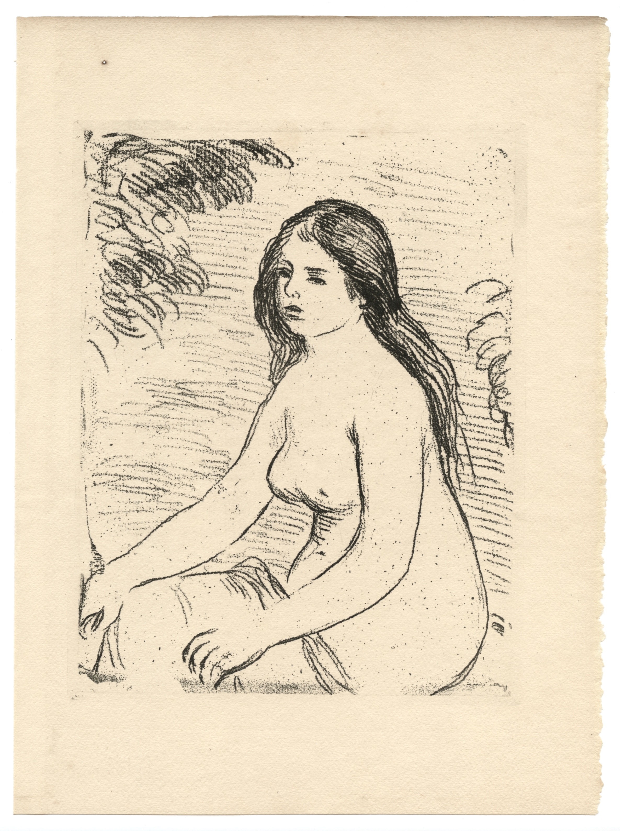 Medium: original soft ground etching. Catalogue reference: Delteil 12. Executed in 1906, this lovely impression on cream laid paper is from the rare 1906 first edition of "Histoire des Peintres Impressionnistes" by Theodore Duret, published in Paris by Floury. Plate size: 7 1/4 x 5 3/4 inches (185 x 145 mm); the total sheet size is 10 x 7 3/4 inches (255 x 195 mm). Not signed.