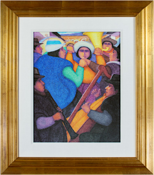 A leading Peruvian artist, Ernesto Gutierrez, was born in Lima, Peru, in 1941. His father was a Spaniard and his mother was a descendant of the Inca. Upon completion of his high school education, Gutierrez entered the School of Fine Arts in Lima, Peru, he received a Bachelor of Fine Arts Degree in 1964 and was awarded a Gold Medal. Sponsored by the Brazilian government, Gutierrez received the Itamarti Scholarship and studied for two years (1966-67) at the Museum of Modern Art in Rio de Janeiro while extensively exhibiting his works throughout the art centers of South America: Rio de Janeiro, Sao Paulo, Cordova, Santiago de Chile, and Lima, among others. In 1971, Gutierrez was granted a Fulbright Scholarship and studied at the University of Wisconsin where he received a Master of Fine Arts Degree in 1974. Gutierrez has been influenced by both local and global artistic factors: pre-Columbian forms and native-popular Peruvian art and also by modern French masters such as Cezanne, Gaugin, and to some extent, Matisse. The boldness of Gutierrez's colors creates an almost sensual excitement: shocking pink, chartreuse, mauve, and the whole gamut of blues, purples, and greens, often underlined and emphasized by complementary colors. In some of his paintings, Gutierrez assumes a cubist-realist simplification of forms and volumes and a precise rendering of surfaces. Gutierrez's sensibility strikes the viewer as essentially Spanish, while his inspiration derives from his Inca heritage, Peruvian landscapes, and folklore.