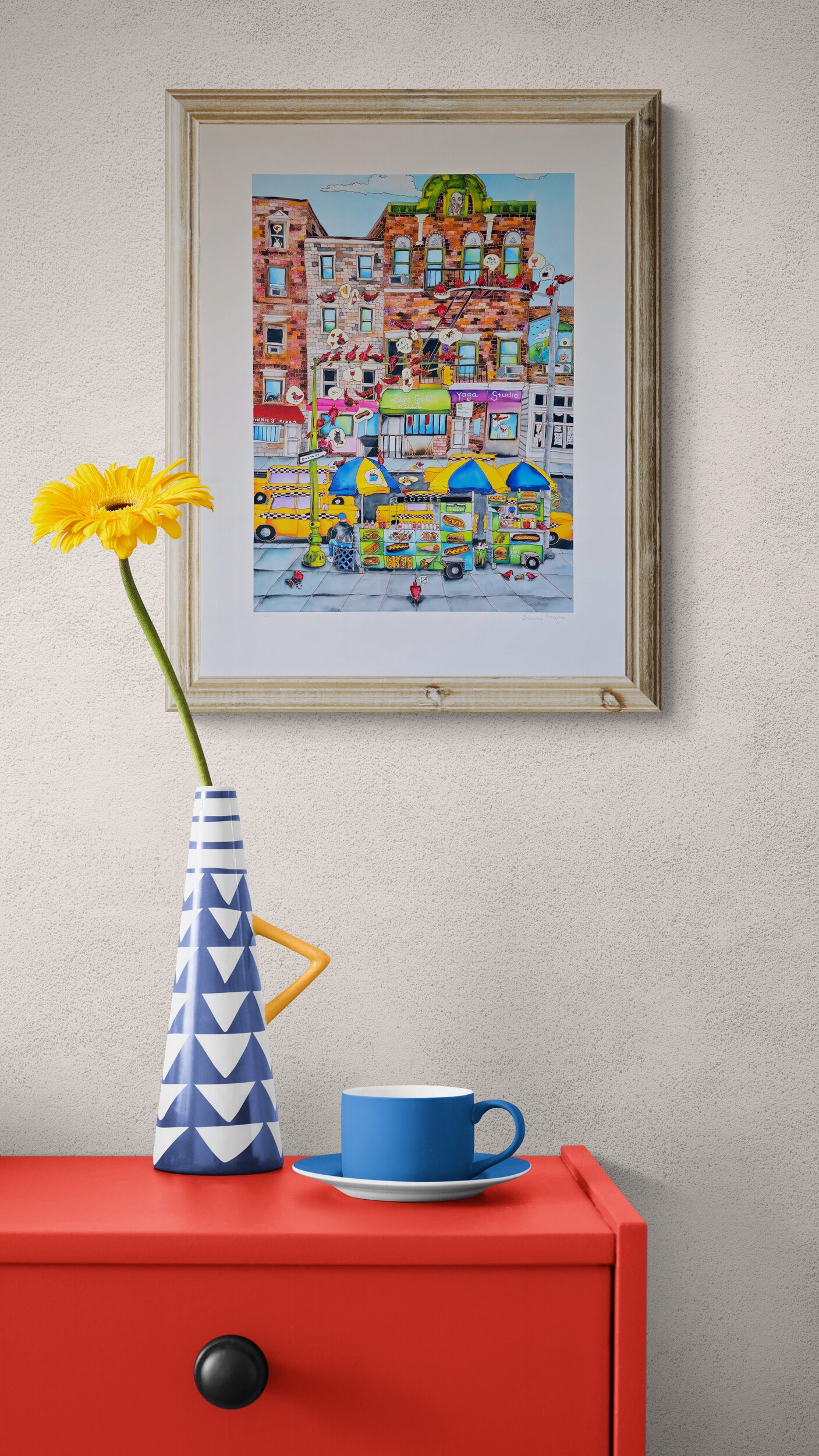 Food Carts (Cityscape, Iconic, James Rizzi, Fun, Vibrant)