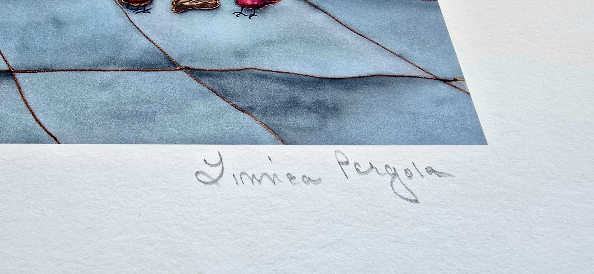 Linnea Pergola is an experimented painter and textile artist based in the United States whose works have been exhibited nationally, as well as in Switzerland, Germany, Puerto Rico, and Qatar. Her love of nature is apparent in her diverse compositions, as she often portrays both animals and birds. As such, Pergola is an advocate for animal rights and the unjust treatment of animals. Her incredibly detailed pieces are created with pencils, charcoal, watercolors, and ink on paper or fabric.
