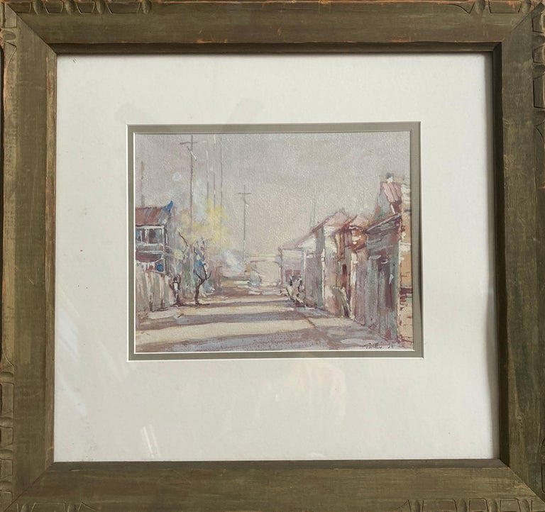 While his name is not as well-known as certain other classic New Orleans artists, Arnold Turtle is highly regarded and his work is prized by connoisseurs. His scenes of the New Orleans French Quarter are among the most evocative and beautiful ever done - this one being a perfect example. At the time this was painted, the French Quarter was a run-down area inhabited by bohemians and artists; this would have been in the WPA era. 17" x 18" framed, image itself is 8" x 5". Nicely framed behind UV glass; you might decide to change out the white mat as some specks have crept inside.