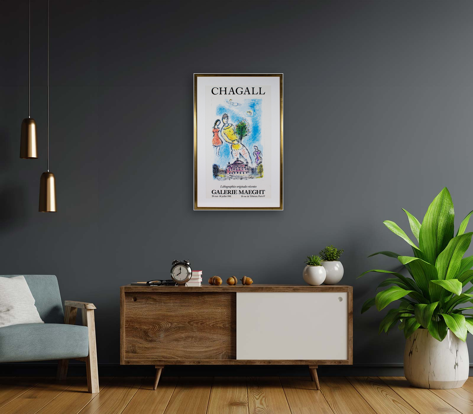 Marc Chagall (1887–1985) was a Russian-French modernist artist celebrated for his unique blend of symbolic, dreamlike imagery and vibrant colors. Born in Vitebsk, Russia, Chagall initially absorbed influences from Russian folk art and Fauvism. His distinctive style evolved into a fusion of Cubism, Surrealism, and Expressionism. Notable works like "I and the Village" (1911) exemplify his fantastical narratives and floating compositions. Forced to flee the rise of Nazi Germany, Chagall settled in France and continued to produce art that often incorporated Jewish themes and biblical motifs. His monumental stained glass windows, like those at the Jerusalem Hadassah Medical Center, attest to his versatile talent. Chagall's profound contributions to 20th-century art, spanning painting, stained glass, and ceramics, secured his place as a master of poetic and imaginative storytelling.