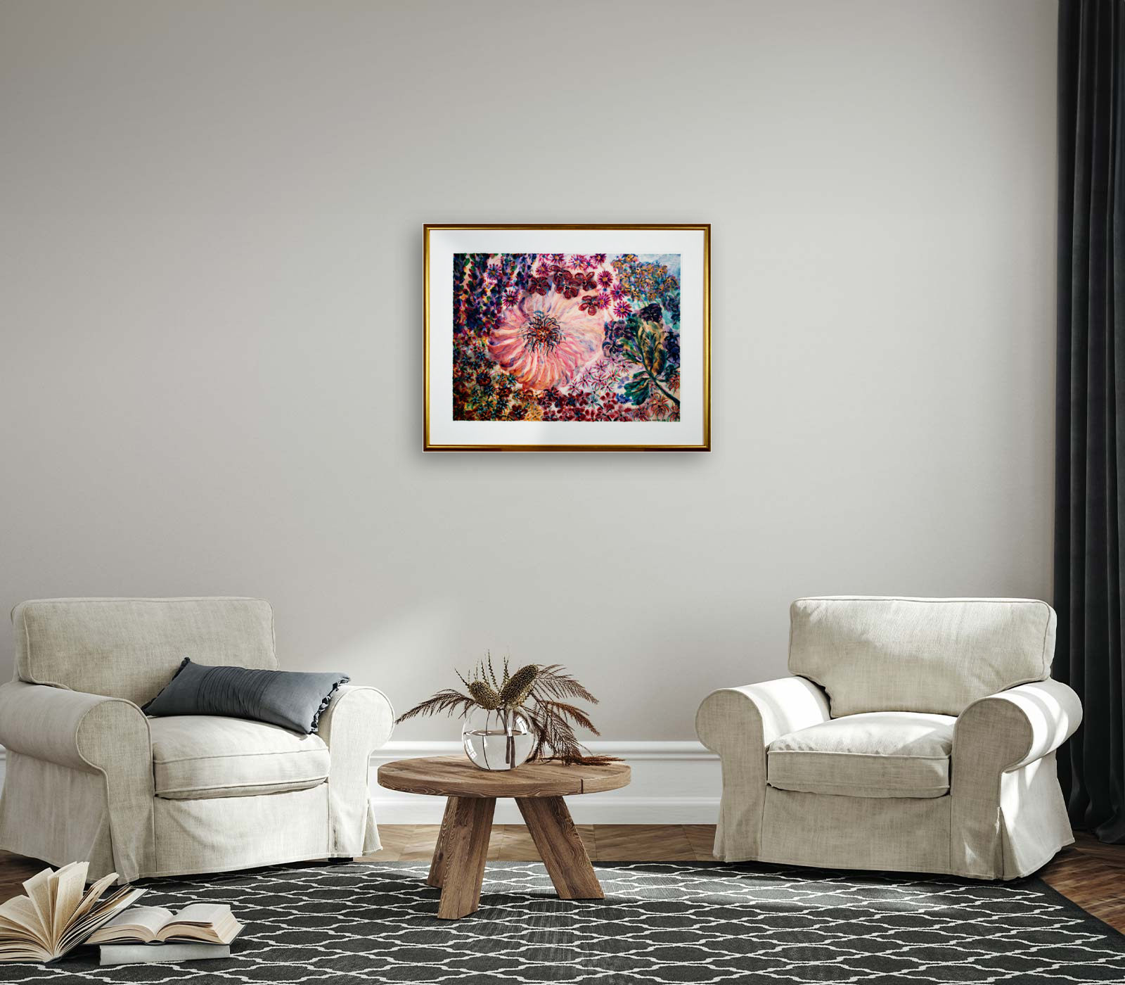 Materials: Oil pastel and watercolor over giclee signed lower right