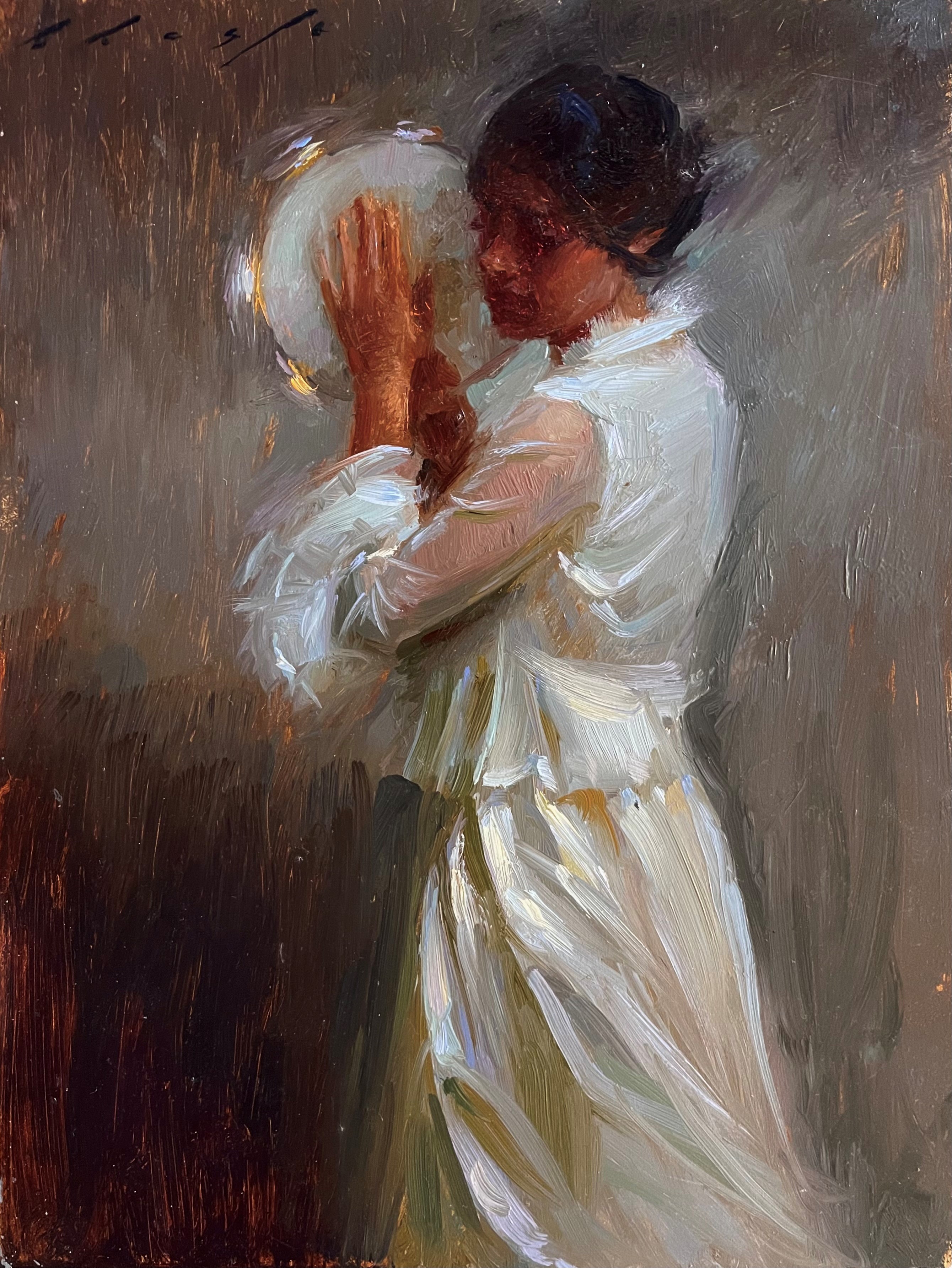 Suchitra Bhosle is an India-born artist based in Illinois. Suchitra draws inspiration from 20th-century naturalist painters and embraces impressionism to depict everyday representational scenes. Suchitra excels at capturing and expressing the mood of her subjects, often in contemplative classical settings. This lends a timeless yet intimate quality to her paintings. Though primarily a portrait and figurative painter, she has recently been painting urban and architectural subjects. Suchitra is represented in leading fine art galleries across USA including Santa Fe, Washington D.C., Carmel and Houston. Her paintings have won awards at international juried shows hosted by The Portrait Society of America, Oil Painters of America and American Impressionist Society.