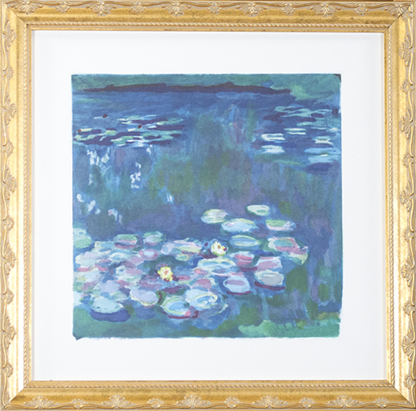 These works are after the French painter, Claude Monet, who was born November 14, 1840 in Paris. According to Laura Auricchio from the Metropolitan Museum of Art, "Monet was a key figure in the Impressionist movement that transformed French painting in the second half of the nineteenth century. Throughout his long career, Monet consistently depicted the landscape and leisure activities of Paris and its environs a well as the Normandy coast. He led the way to twentieth-century modernism by developing a unique style that strove to capture on canvas the very act of perceiving nature." In 1874, the artist joined with Edgar Degas, Edouard Manet, Camille Pissarro, Auguste Renoir, and others in establishing an independent exhibition where they became known as "impressionists." Monet's subjects were the people and places he knew best. After the painters of the Barbizon school, the artist was committed to close observation of nature and naturalistic representation. While the Barbizon painters made only preliminary sketches en plein air, Monet often worked on large-scale canvases outdoors, then reworked and completed them in his studio. As Auricchio states: "His quest to capture nature more accurately also prompted him to reject European conventions governing composition, color, and perspective." In the 1890s, Monet painted series of objects (Haystacks, Poplars, Rouen Cathedral), recording how their appearance changed throughout the day. In the 1910s and 1920s, the artist focused almost exclusively on the lily pond on his property at Giverny. He died at Giverny on December 5, 1926 at the age of 86.