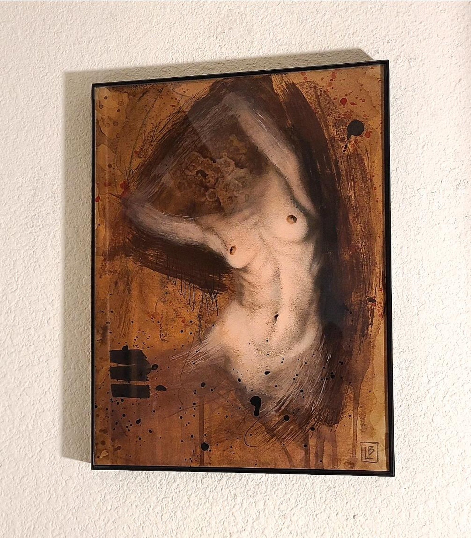 Hyperbole (Contemporary Nude Figurative Painting, Framed)