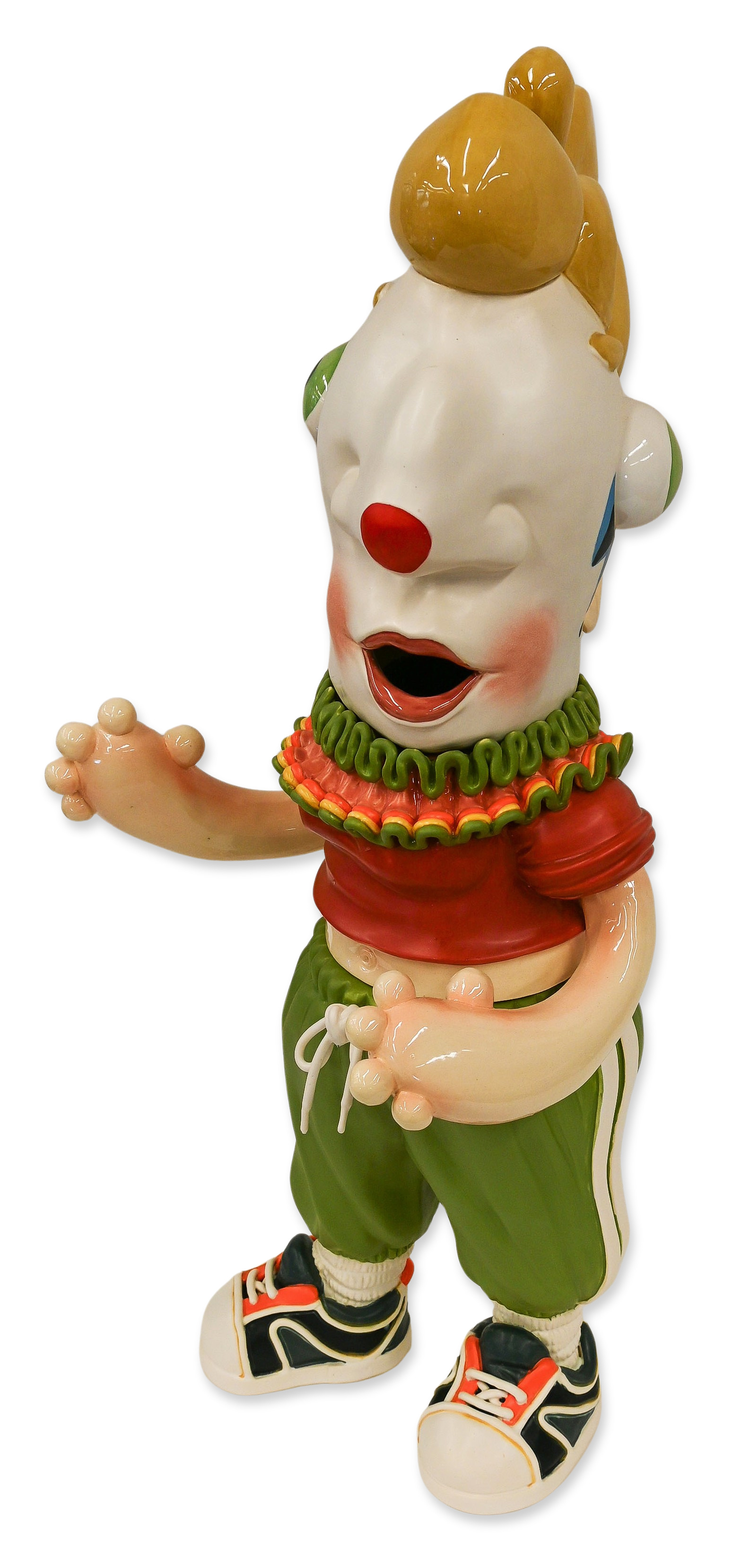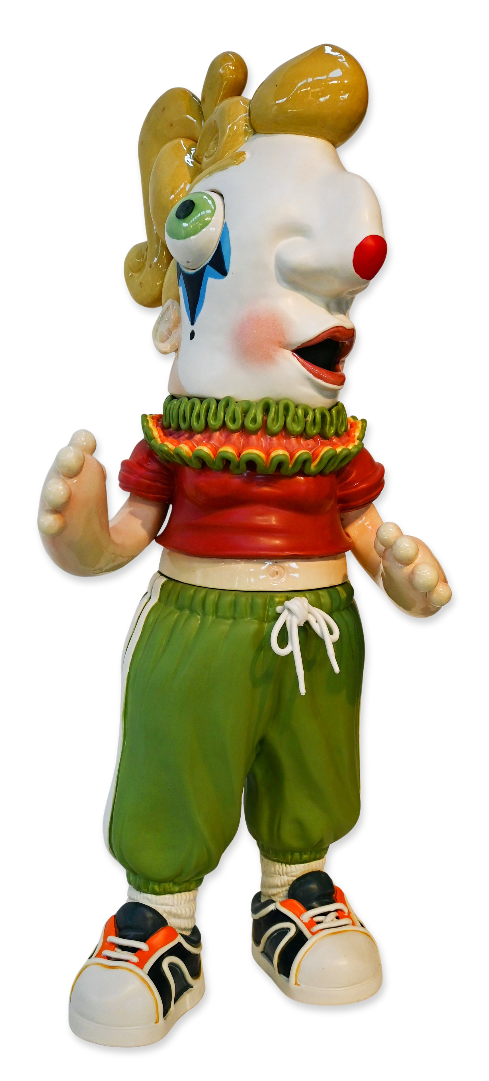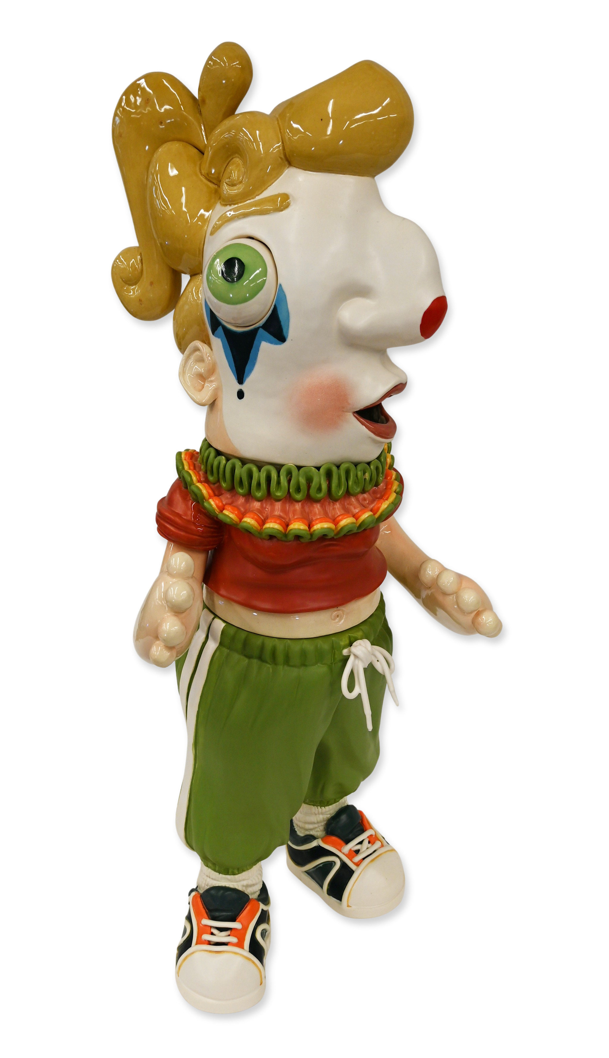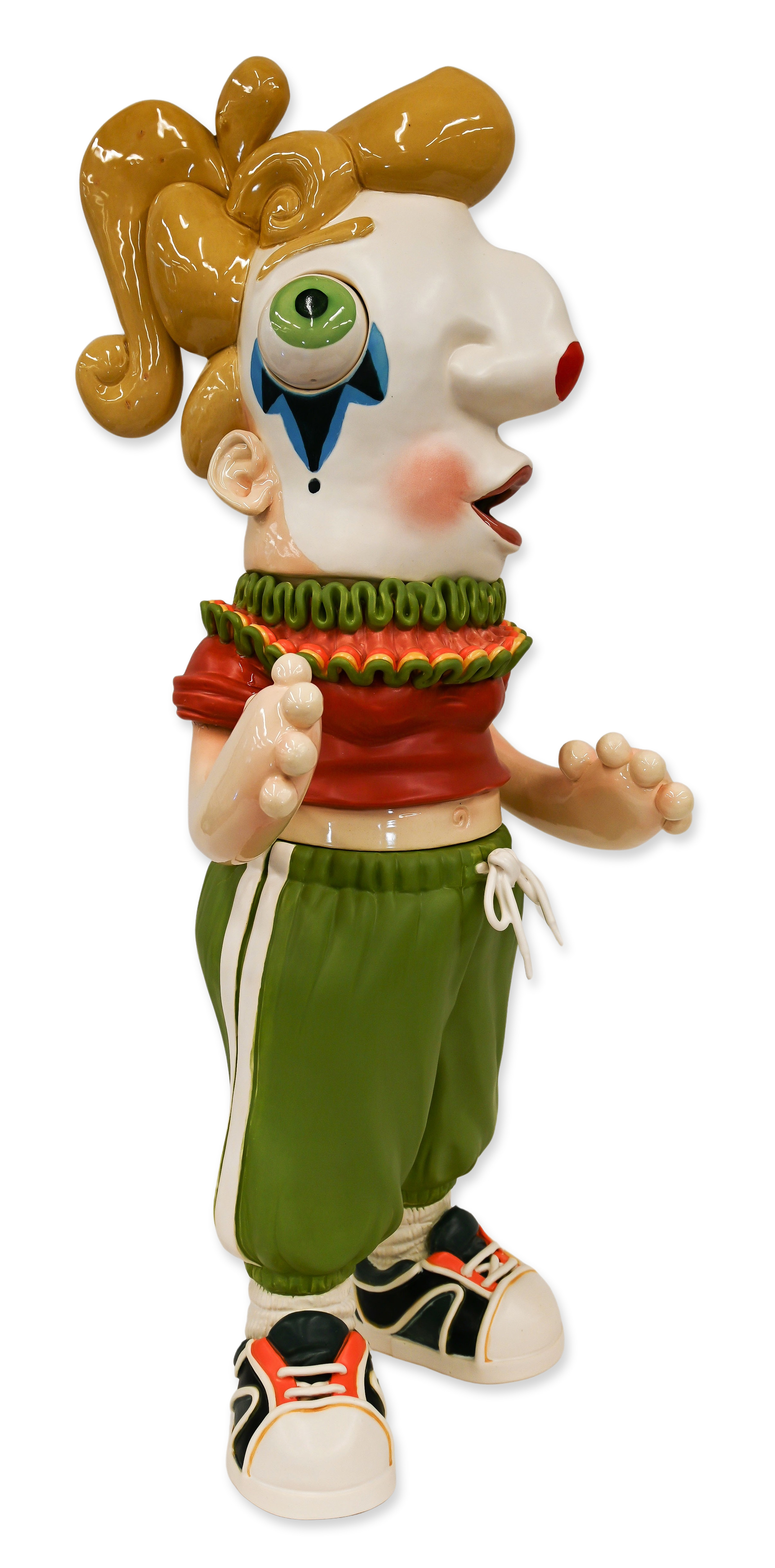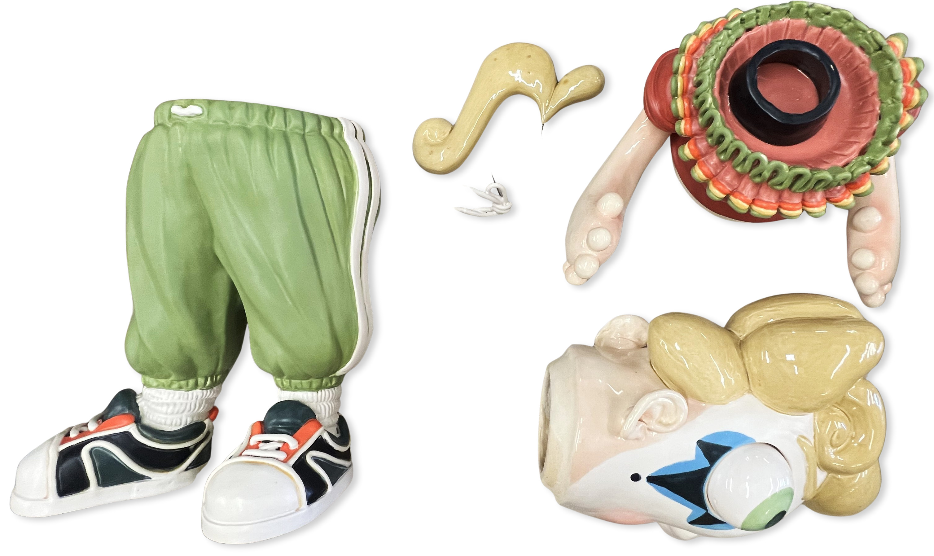 Hannah Schelb (b. 1990s) is a Kansas City–based ceramic artist working primarily in porcelain. In this series, working in bright color and exaggerated form, Schelb draws viewers into deceptively whimsical surfaces that disclose the more troubling realities of interpersonal life. She began working in clay in 2009 while at Augusta University (BFA, 2012) and went on to earn both an MA and an MFA from the University of Wisconsin–Madison in 2020–2021. Schelb’s work—small-scale, highly finished porcelain forms and sculptural ceramics—has been exhibited nationally and is informed by residencies and teaching roles that emphasize process, surface, and material research.