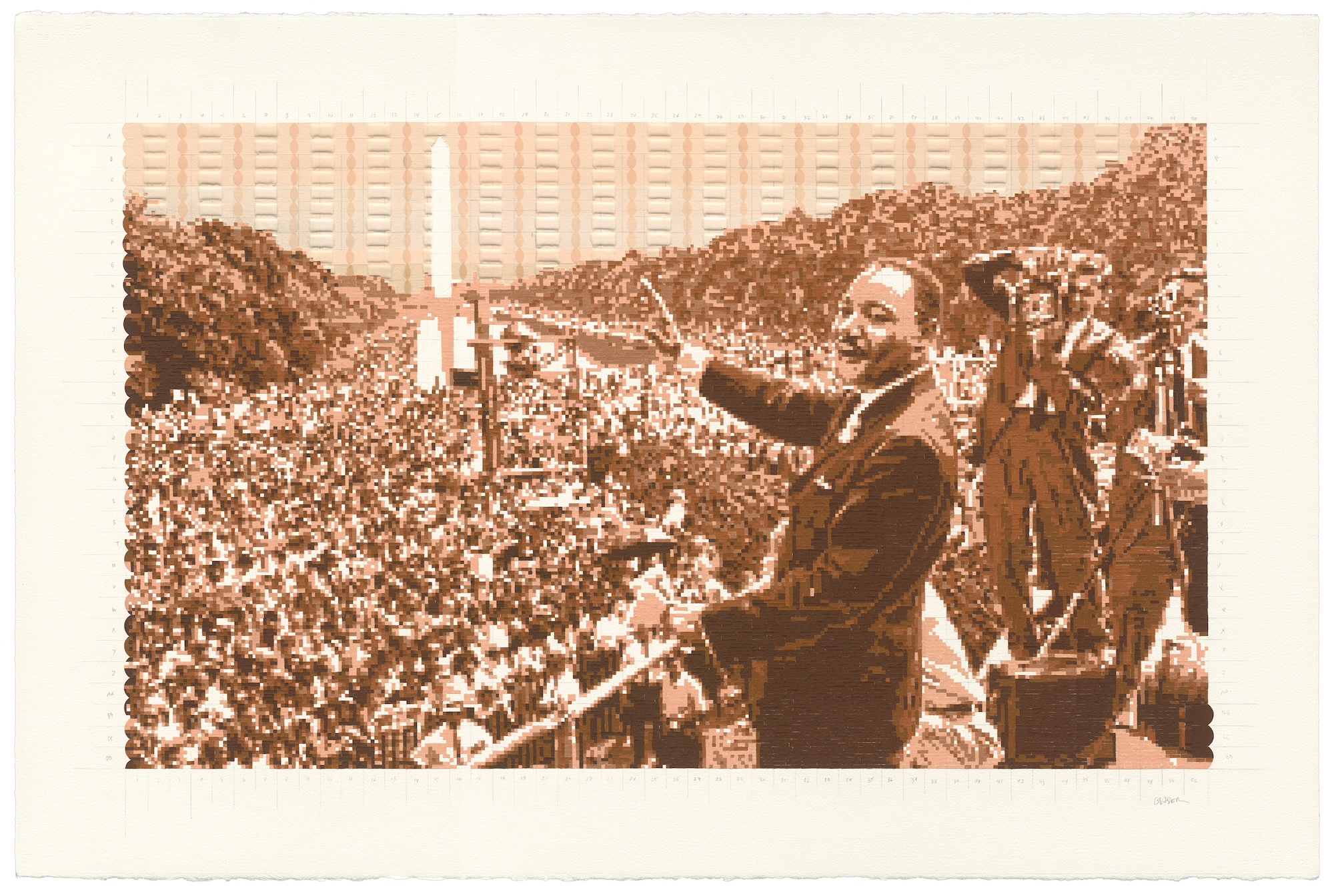 The one commonality in his execution, regardless of style or medium, is his use of the centuries-old grid system.