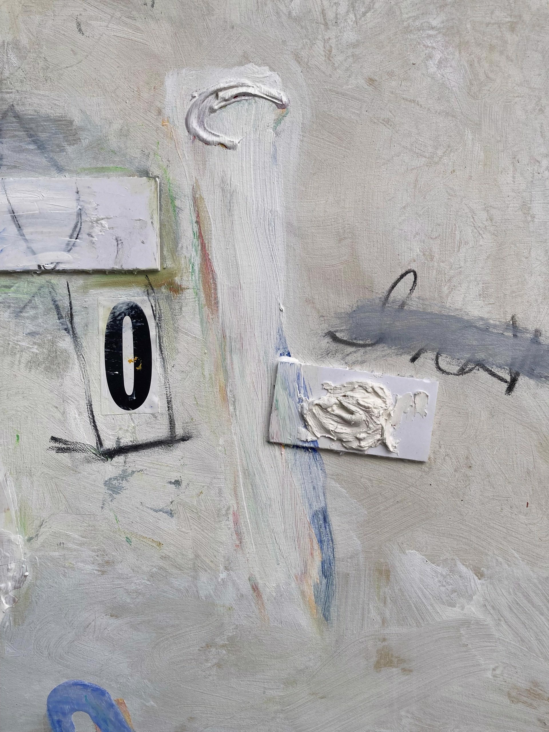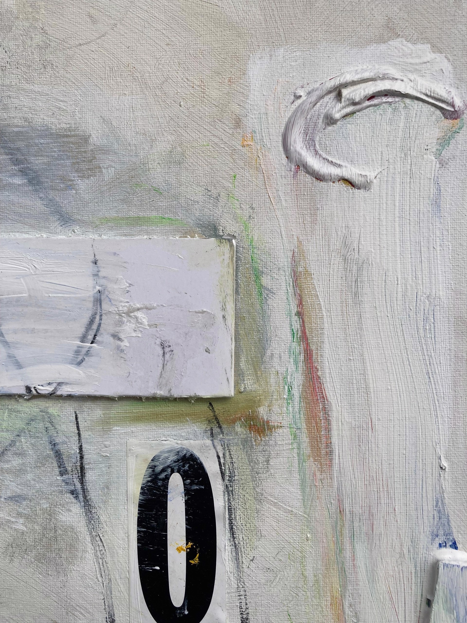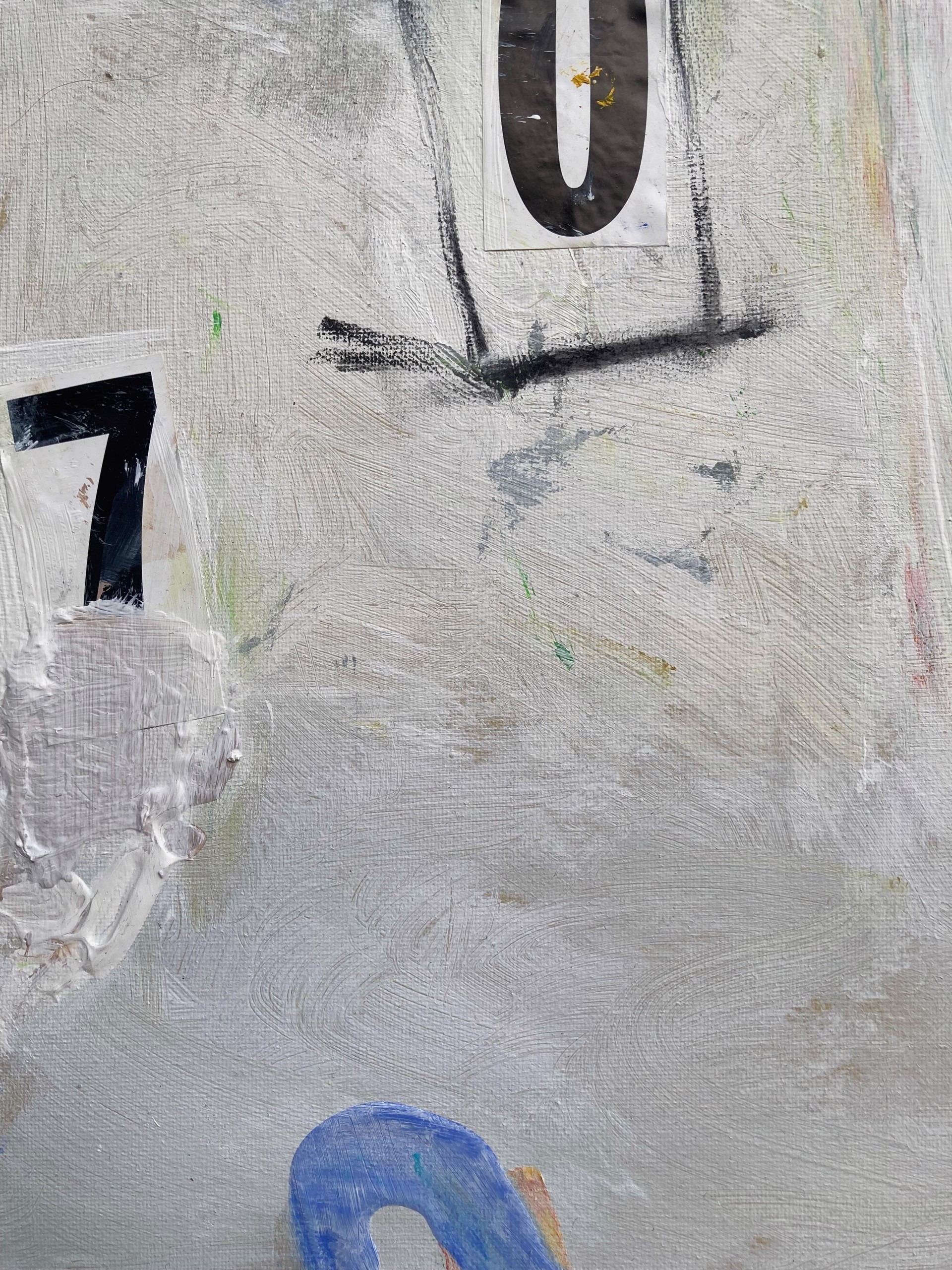 Artist's Statement: "I am revisiting a series of paintings I did back in 2015 (long since sold) that I really enjoyed creating. They exhibit echoes of Rauschenberg, Johns and Twombly during their playful period of the late 50's and early 60's, but they feel distinctive and personal to me rather than derivative. I have to really let loose and take some chances when making these, or they can quickly seem contrived."