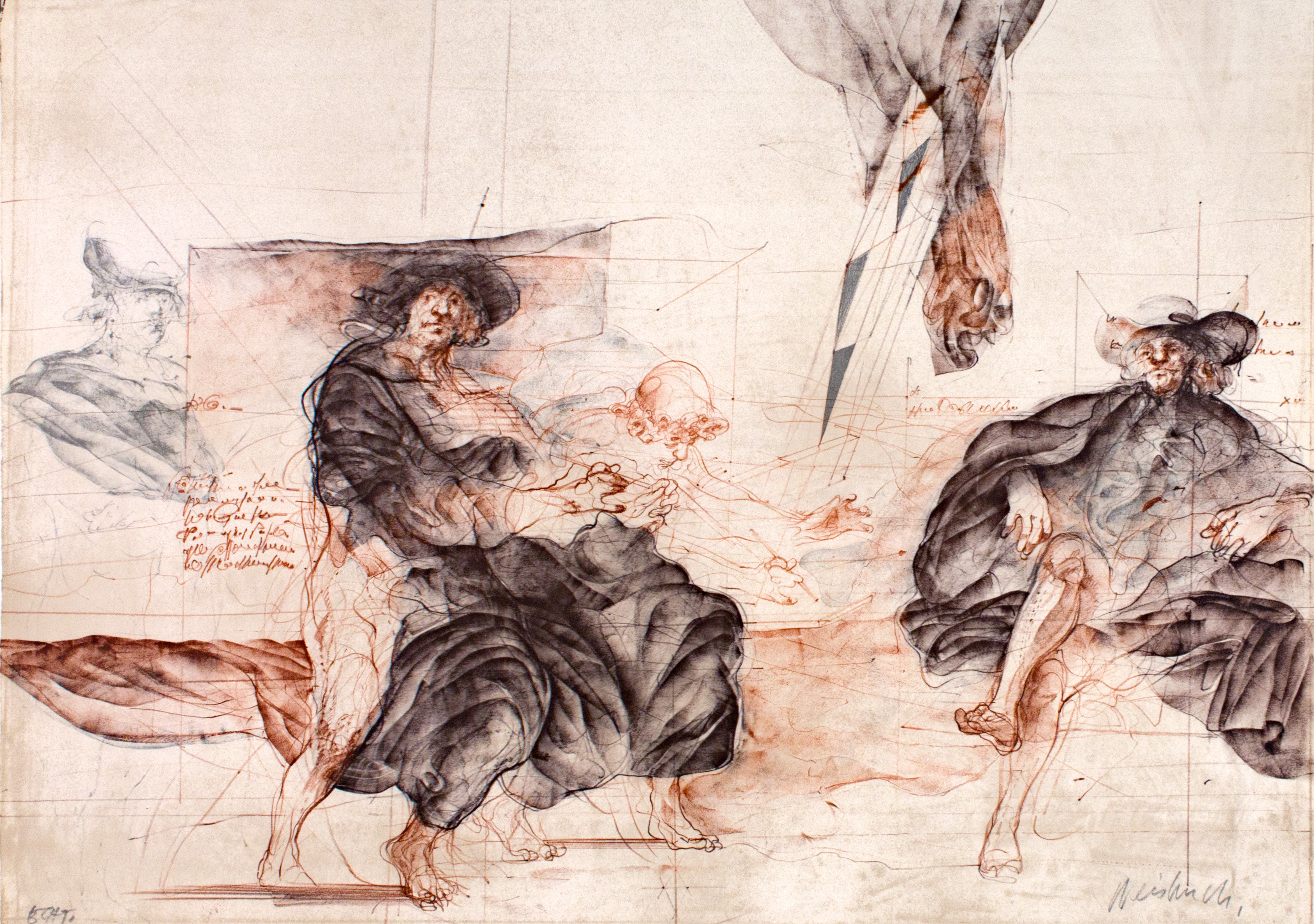 Claude Weisbuch was born in Thionville, France in 1927, and was a pupil at L'Ecole des Beaux-Arts de Nancy, France. As a painter, engraver, and lithographer, Weisbuch depicts subjects such as puppets, harlequins, musicians, equestrian scenes, opera, and dancers. In 1961, he received the Critics' Prize. In 1968, he became a full member of the Society of French painters-engravers. A velvety line dominates his work. Using only a few earth tones as well as black and white, Weisbuch emphasized movement and form through line weight and tone. As a theatre and classical music enthusiast, the artist had a flair for what is raw, ecstatic, and controlled. "I like the sketch, the uncompleted the painting filled with mystery." His work is mainly devoted to engraving. According to Patrick Waldberg, "man appears as an obsessive theme in Weisbuch's work, either that he strives to capture it in the mirror by contemplating his own image, or that he surprises him in the features of his visitors, or that he is trying to decipher it among the masters of the past that he worships, Jacques Callot, Rembrandt or Honore Daumier." His works have the appearance of unfinished sketches, mixing few colors but with great liveliness of line. He died in 2014 in Paris.