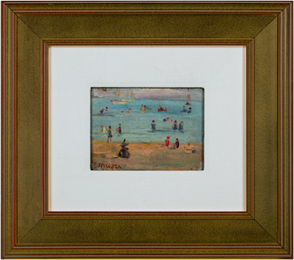 It was during this time that Spicuzza changed his style of painting, developing an impressionistic use of color, form and atmospheric renditions. After a period of grinding poverty, one of Spicuzza's pictures won a major New York competition. It was the first of 60 wins, both in the U.S. and Paris. He became a fashionable painter, and many of the leading collections have his work. Spicuzza's typical works were beach scenes, still life, landscapes and portraits done in pastels, oils, ink, charcoal and watercolors. Much of his work traced the history of Milwaukee in the early 1900s. He was probably best known for his scenes of women and children splashing in the waves at Bradford and McKinley beaches.