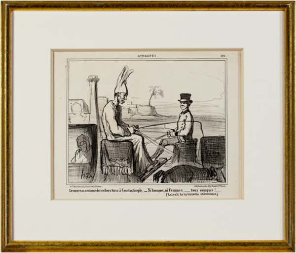 Honore Daumier (born February 20/26, 1808, Marseille, France-died February 11, 1879, Valmondois, France) was a prolific French caricaturist, painter, and sculptor especially renowned for his cartoons and drawings satirizing 19th century French politics and society from the Revolution of 1830 to the fall of the second Napoleonic Empire in 1870. He was a republican democrat, who satirized and lampooned the monarchy, politicians, the judiciary, lawyers, the bourgeoisie, as well as his countrymen and human nature in general. His paintings, through hardly known during his lifetime, helped introduce techniques of Impressionism into modern art. The young Daumier learned lithography and produced miscellaneous illustrations in the mid to late 1820s. He produced his first caricatures of note for La Silhouette and joined the staff of La Caricature, expressing his political convictions as a working class republican in opposition to the new monarchy, its bureaucracy, and the bourgeoisie that supported and profited from it. Daumier's caricature of King Louis Philippe caused him to be fined and imprisoned for six months. In the late 1840s, the artist became increasingly dedicated to painting. The poet Charles Baudelaire became a close friend and advocate of Daumier's work. He also gained the friendship of important painters. In 1860, the journal, Le Charivari, dropped Daumier from their staff and he suffered severe financial hardship. Le Charivari presented him with a new contract in 1864 and he returned to making caricatures and cartoons. By the mid 1860s, a few collectors were showing some interest in his drawings and watercolors and a group of friends organized an exhibition of the artist's work in Paris. Losing his sight, Daumier lived for the remainder of his life in Valmondois. He died in February of 1879.