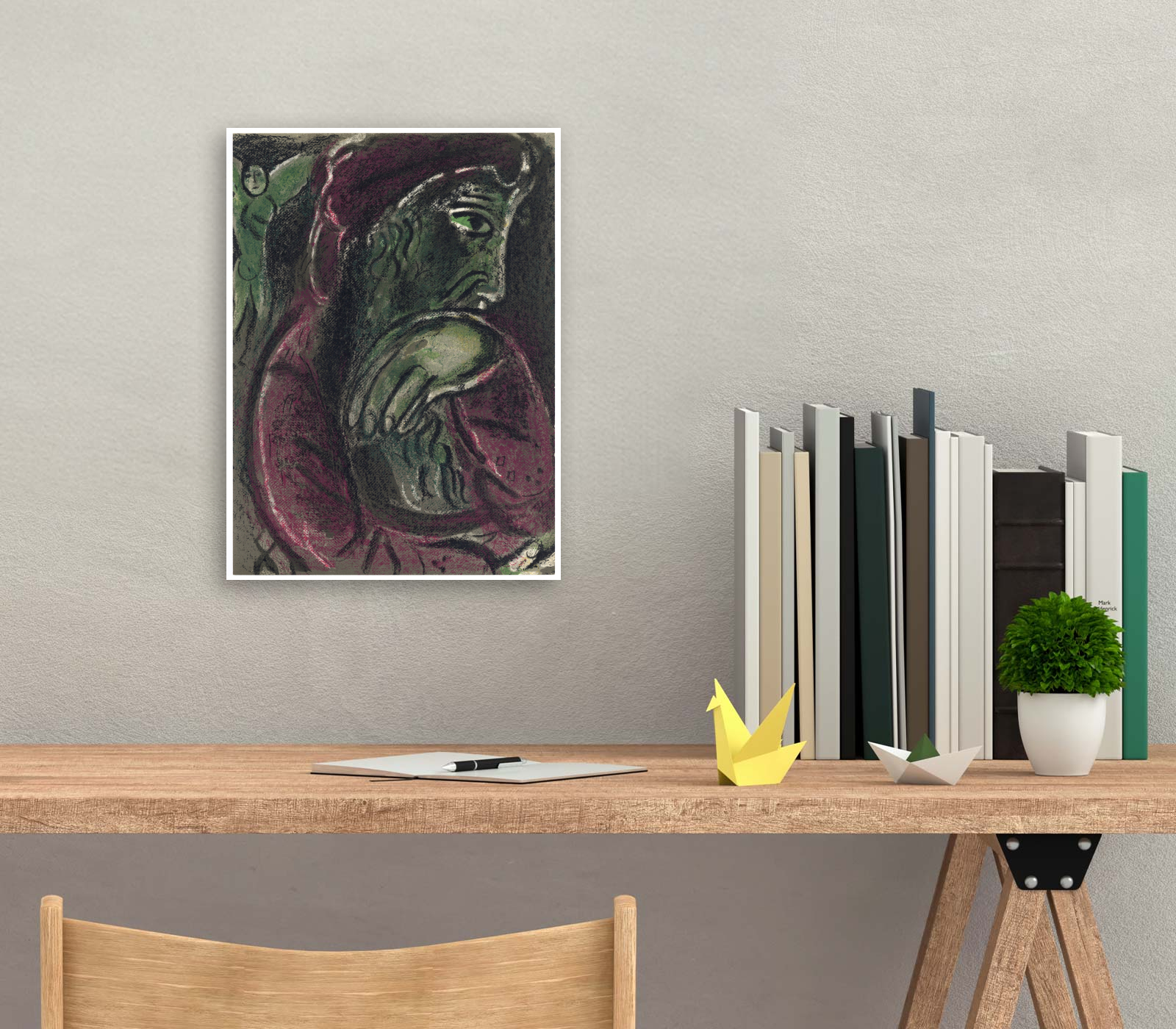 Medium: original lithograph. Catalogue reference M 254. This beautiful color lithograph was printed by Mourlot and published in Paris by Teriade for Verve in 1960 for a special edition devoted exclusively to Chagall's original Bible art. Verve was founded in 1937 to showcase original prints by the leading artists of the day, with outstanding technical quality. The Bible lithographs were highly acclaimed at the time of their publication, and today they are some of Chagall's most popular and sought-after works. Size: 14 x 10 1/4 inches (355 x 262mm). Not signed.