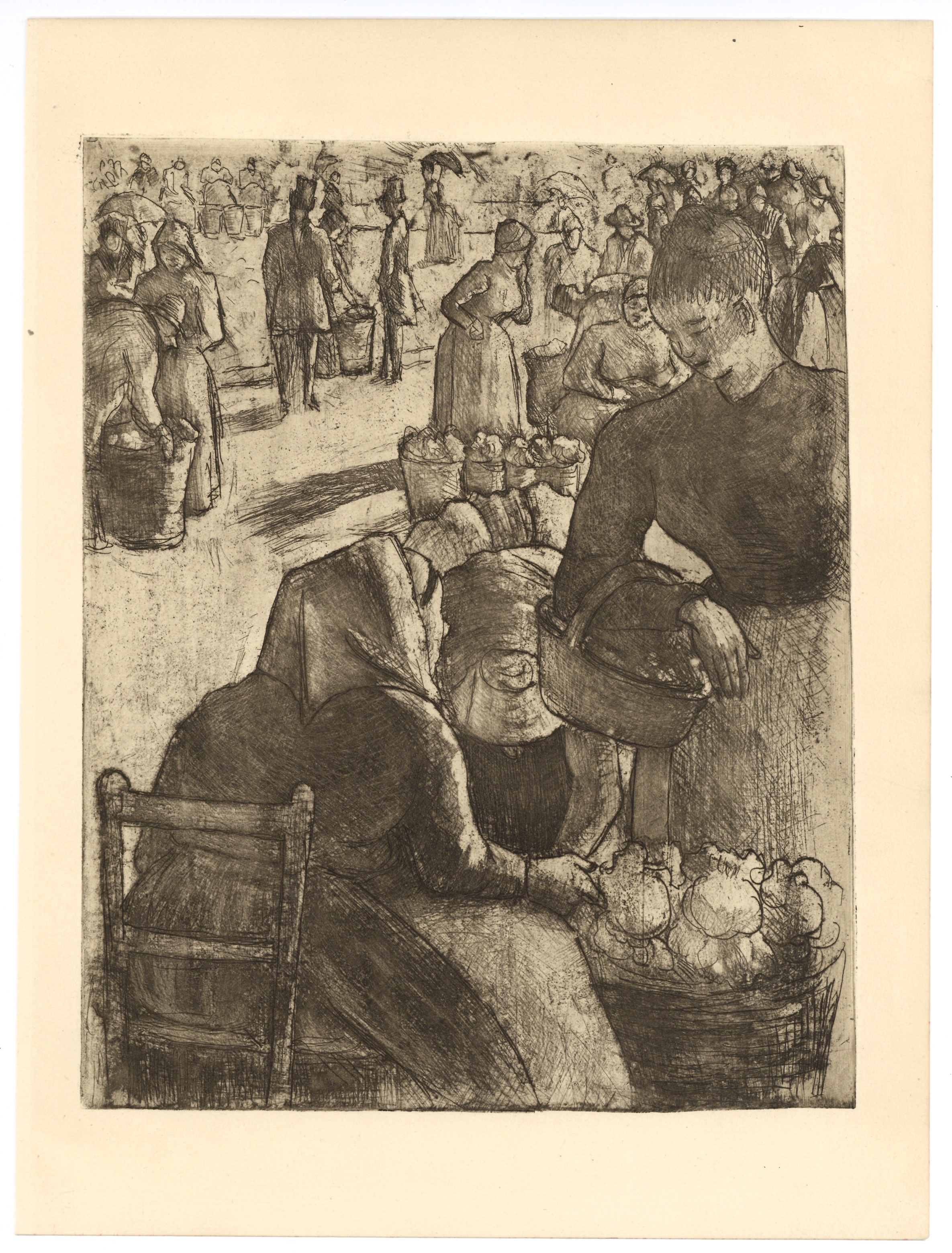 Medium: original etching and and aquatint with drypoint. Catalogue reference: Delteil 97. Executed in 1891, this lovely impression is from the edition on cream wove paper published in 1923 for inclusion in the Loys Delteil catalogue raisonne "Le peintre-graveur illustre: Pissarro, Sisley, Renoir (Volume 17). Plate size: 10 x 8 inches (255 x 201 mm). Sheet size: 12 1/2 x 9 1/4 inches (318 x 235 mm). Not signed.