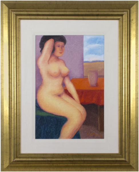 A leading Peruvian artist, Ernesto Gutierrez, was born in Lima, Peru, in 1941. His father was a Spaniard and his mother was a descendant of the Inca. Upon completion of his high school education, Gutierrez entered the School of Fine Arts in Lima, Peru, he received a Bachelor of Fine Arts Degree in 1964 and was awarded a Gold Medal. Sponsored by the Brazilian government, Gutierrez received the Itamarti Scholarship and studied for two years (1966-67) at the Museum of Modern Art in Rio de Janeiro while extensively exhibiting his works throughout the art centers of South America: Rio de Janeiro, Sao Paulo, Cordova, Santiago de Chile, and Lima, among others. In 1971, Gutierrez was granted a Fulbright Scholarship and studied at the University of Wisconsin where he received a Master of Fine Arts Degree in 1974. Gutierrez has been influenced by both local and global artistic factors: pre-Columbian forms and native-popular Peruvian art and also by modern French masters such as Cezanne, Gaugin, and to some extent, Matisse. The boldness of Gutierrez's colors creates an almost sensual excitement: shocking pink, chartreuse, mauve, and the whole gamut of blues, purples, and greens, often underlined and emphasized by complementary colors. In some of his paintings, Gutierrez assumes a cubist-realist simplification of forms and volumes and a precise rendering of surfaces. Gutierrez's sensibility strikes the viewer as essentially Spanish, while his inspiration derives from his Inca heritage, Peruvian landscapes, and folklore.