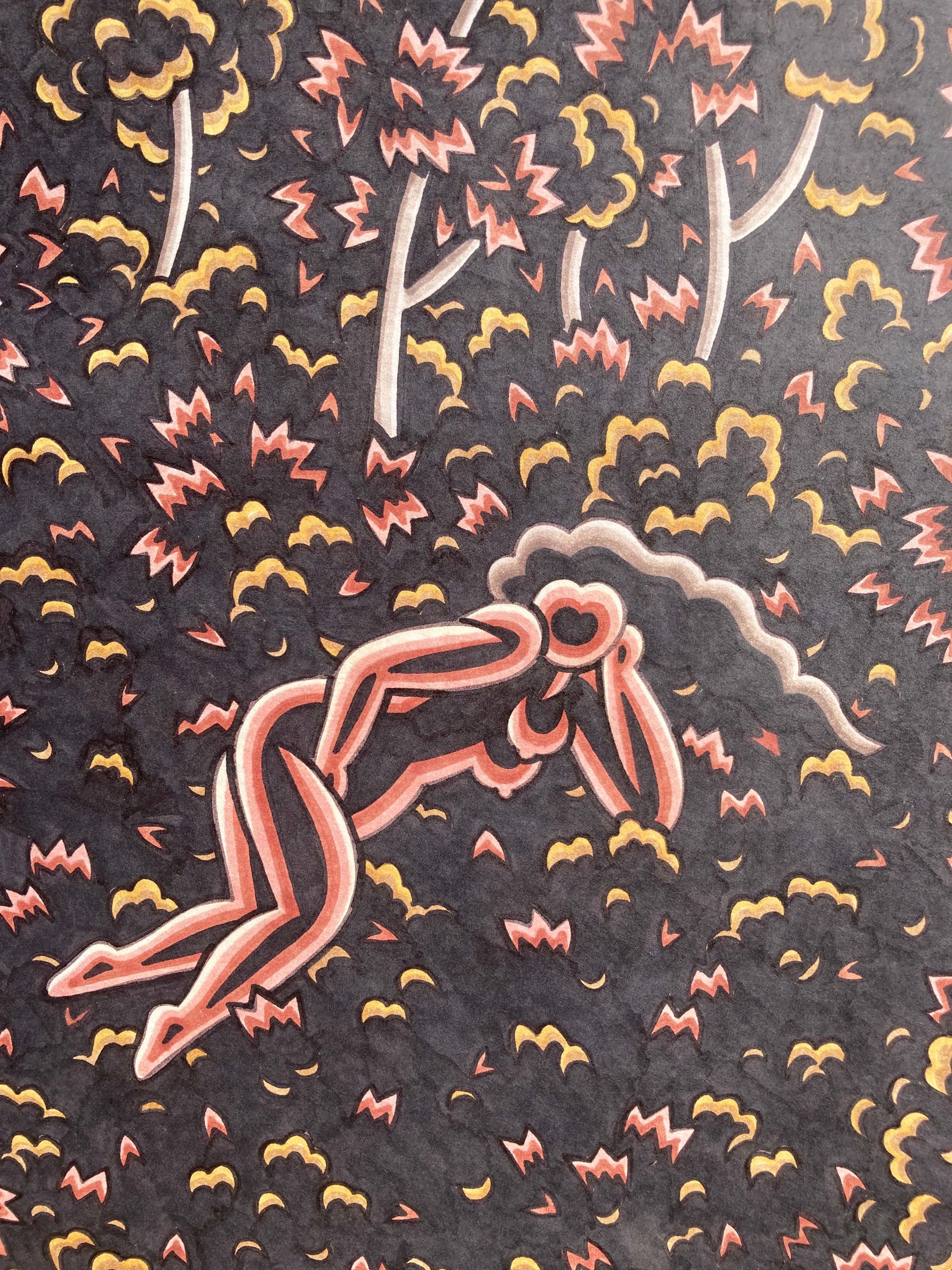 An original marker-and-ink painting by one of New Orleans' most iconic artists, Robert Gordy. His works are at the Met, the Whitney and other major museums around the world. He was a leading member of the Pattern and Decoration movement. Robert Gordy loved this medium (marker) and in fact most of his original works are marker and ink, not acrylic on canvas. This is classic Gordy imagery. Comes with frame and mat, but will ship without glass (inexpensive to replace). Dimensions given are framed; actual image size is 28" x 22".
