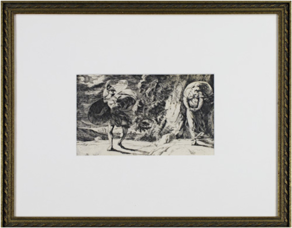 Alexander Runciman (1736-1785) was a Scottish painter of historical and mythological subjects. He was born in Edinburgh, and studied at the Foulis Academy, Glasgow, and from 1750 to 1762 he was apprenticed to the landscape painter Robert Norie, later becoming a partner in the Norie family firm. He also worked as a stage painter for the Theatre Royal in Edinburgh. In 1767, he went to Rome, where he spent five years. During Runciman's stay in Italy he became acquainted with other artists such as Henry Fuseli and the sculptor Johan Tobias Sergel. Runciman's earliest efforts had been in landscape; he now turned to historical and imaginative subjects, exhibiting his Nausicaa at Play with her Maidens in 1767 at the Free Society of British Artists, Edinburgh. On his return from Italy after a brief time in London, where in 1772 he exhibited in the Royal Academy, he settled in Edinburgh, and was appointed master of the Trustees' Academy. He was patronised by Sir James Clerk, whose hall at Penicuik House he decorated with a series of subjects from Ossian. He also created various religious paintings and an altar-piece in the Cowgate Episcopal Church, Edinburgh, and easel pictures of Cymon and Iphigenia, Sigismunda Weeping over the Heart of Tancre, and Agrippina with the Ashes of Germanicus. He enjoyed a strong reputation as a landscape painter is his lifetime. Some of his works, due to their spontaneity, vigour of style and colour, and unorthodox composition, place him as an early exponent of modern art..