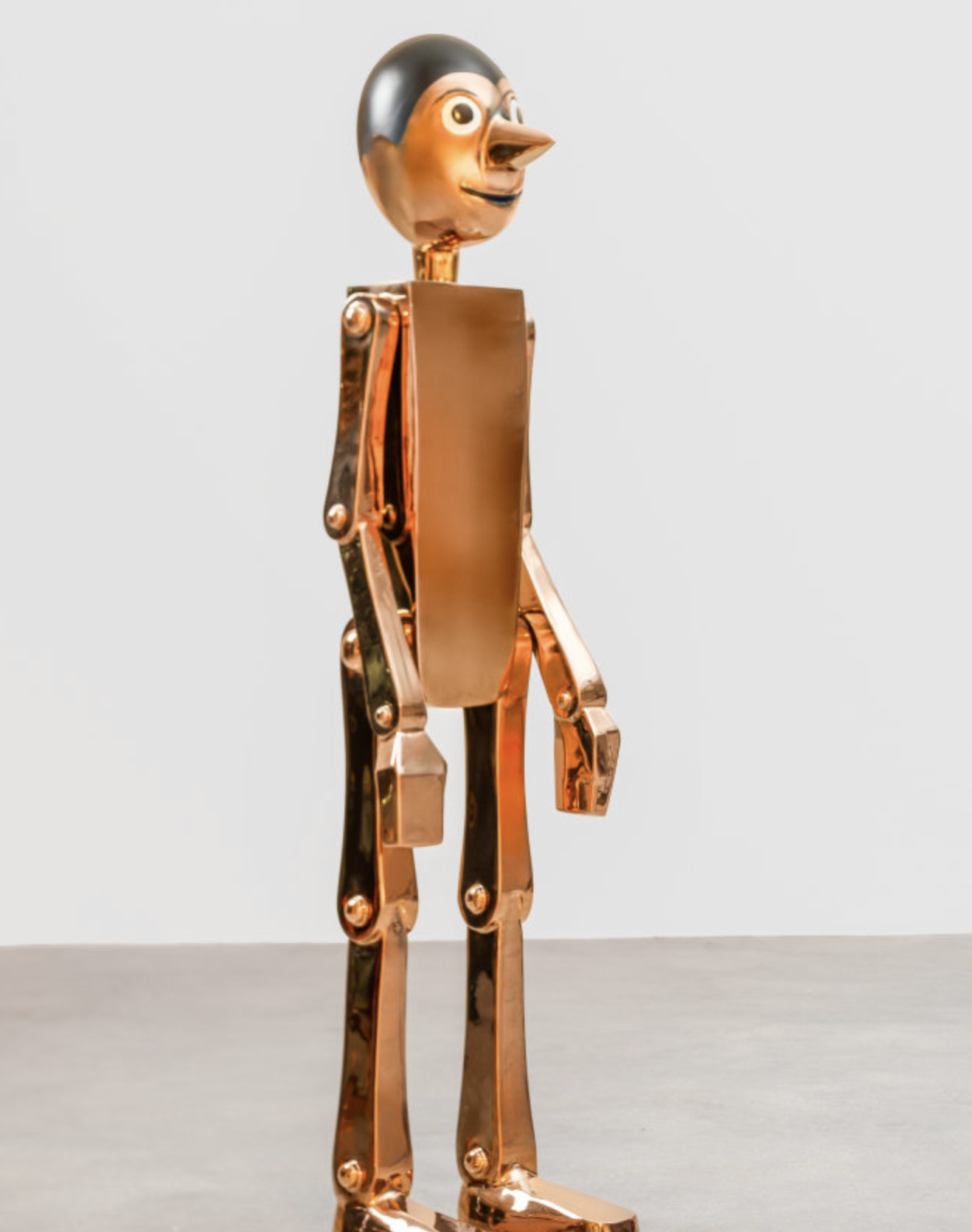 The project was born after Alberto Echegaray Guevara (CAYMAN) received the Best Global Emerging Artist award in Dubai in 2016. At that time, he met and had various meetings with artist Jeff Koons in Qatar, the USA, and Buenos Aires. The influence of Jeff Koons has been crucial, as the artwork combines the concept of internal reflection (metaphysics of being) with the reflection of light. The artist developed and designed a wooden Pinocchio in the initial phase, which evolved into a project involving 3D printing technology. Initially, organic materials like wood were used. Then, high-tech polymers were utilized, followed by a transition to a steel structure for outdoor use. Finally, after testing various materials, it was decided to use the same technology and construction as artist Jeff Koons – Polished stainless steel. It was fabricated in Germany at one of the leading steel mills with these capabilities.