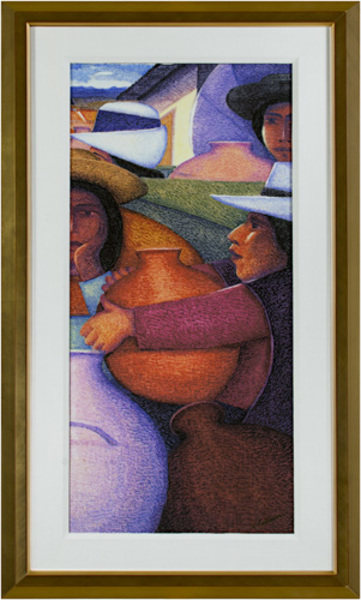 A leading Peruvian artist, Ernesto Gutierrez, was born in Lima, Peru, in 1941. His father was a Spaniard and his mother was a descendant of the Inca. Upon completion of his high school education, Gutierrez entered the School of Fine Arts in Lima, Peru, he received a Bachelor of Fine Arts Degree in 1964 and was awarded a Gold Medal. Sponsored by the Brazilian government, Gutierrez received the Itamarti Scholarship and studied for two years (1966-67) at the Museum of Modern Art in Rio de Janeiro while extensively exhibiting his works throughout the art centers of South America: Rio de Janeiro, Sao Paulo, Cordova, Santiago de Chile, and Lima, among others. In 1971, Gutierrez was granted a Fulbright Scholarship and studied at the University of Wisconsin where he received a Master of Fine Arts Degree in 1974. Gutierrez has been influenced by both local and global artistic factors: pre-Columbian forms and native-popular Peruvian art and also by modern French masters such as Cezanne, Gaugin, and to some extent, Matisse. The boldness of Gutierrez's colors creates an almost sensual excitement: shocking pink, chartreuse, mauve, and the whole gamut of blues, purples, and greens, often underlined and emphasized by complementary colors. In some of his paintings, Gutierrez assumes a cubist-realist simplification of forms and volumes and a precise rendering of surfaces. Gutierrez's sensibility strikes the viewer as essentially Spanish, while his inspiration derives from his Inca heritage, Peruvian landscapes, and folklore.
