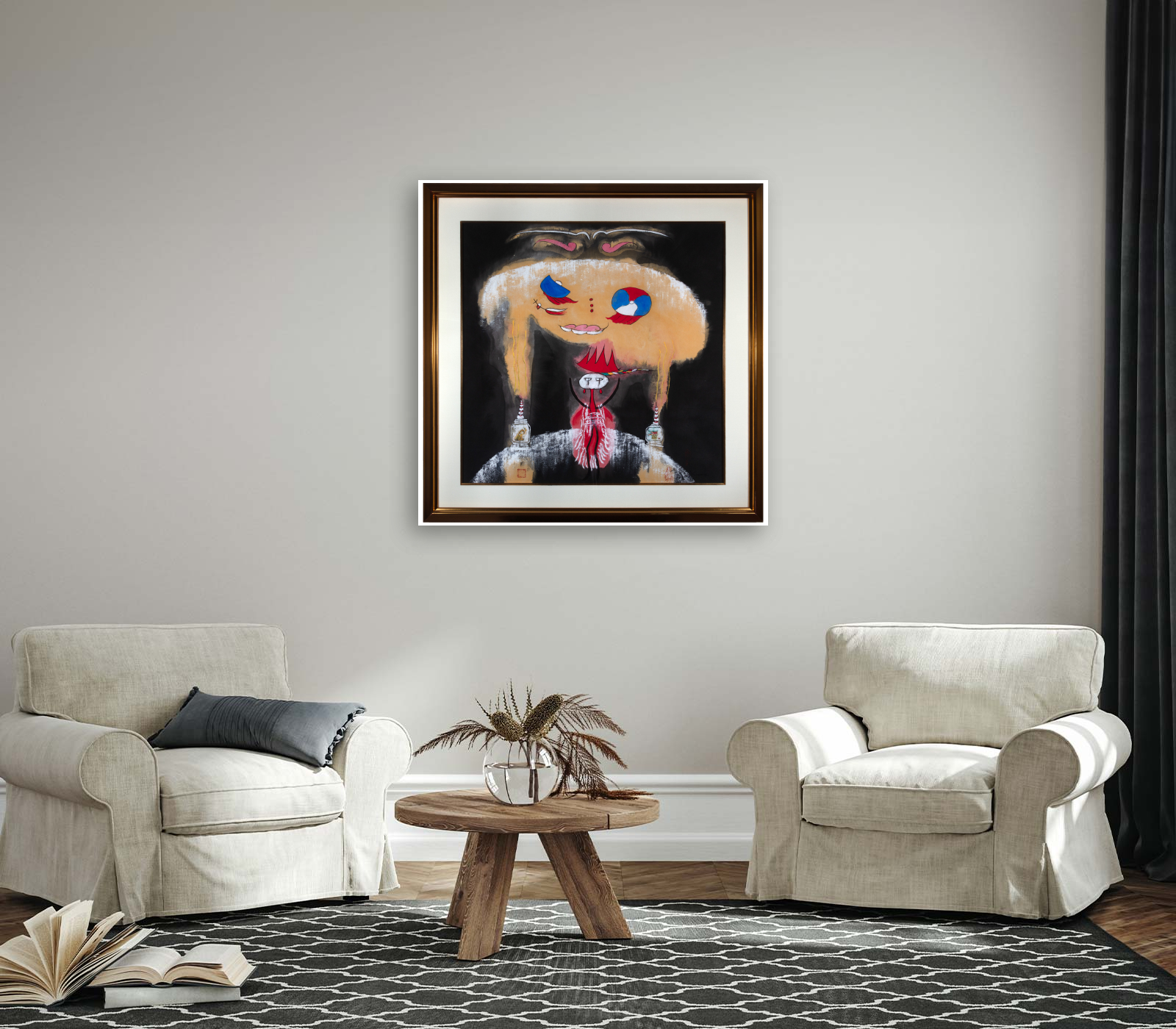 Materials: Mixed media on paper, signed
