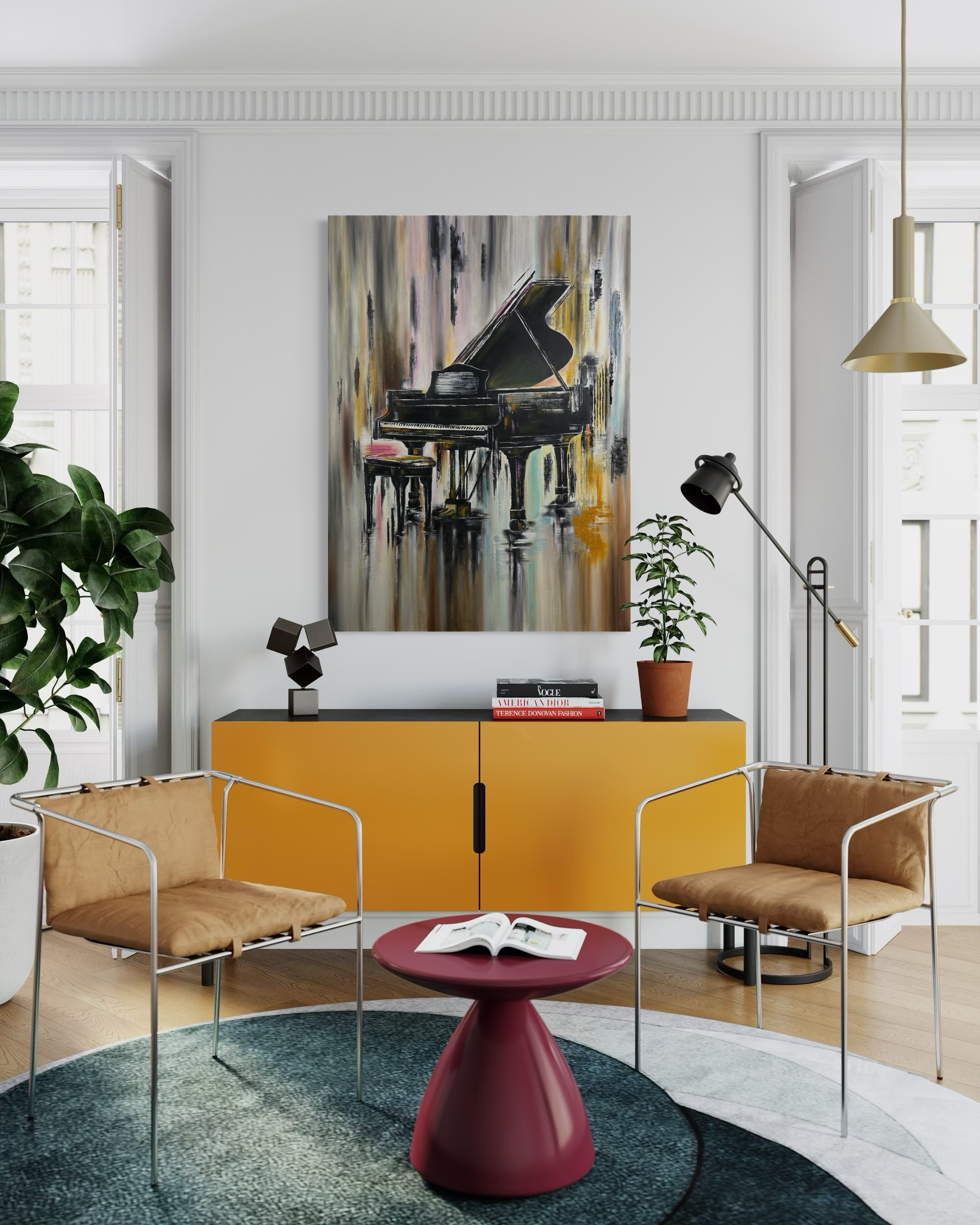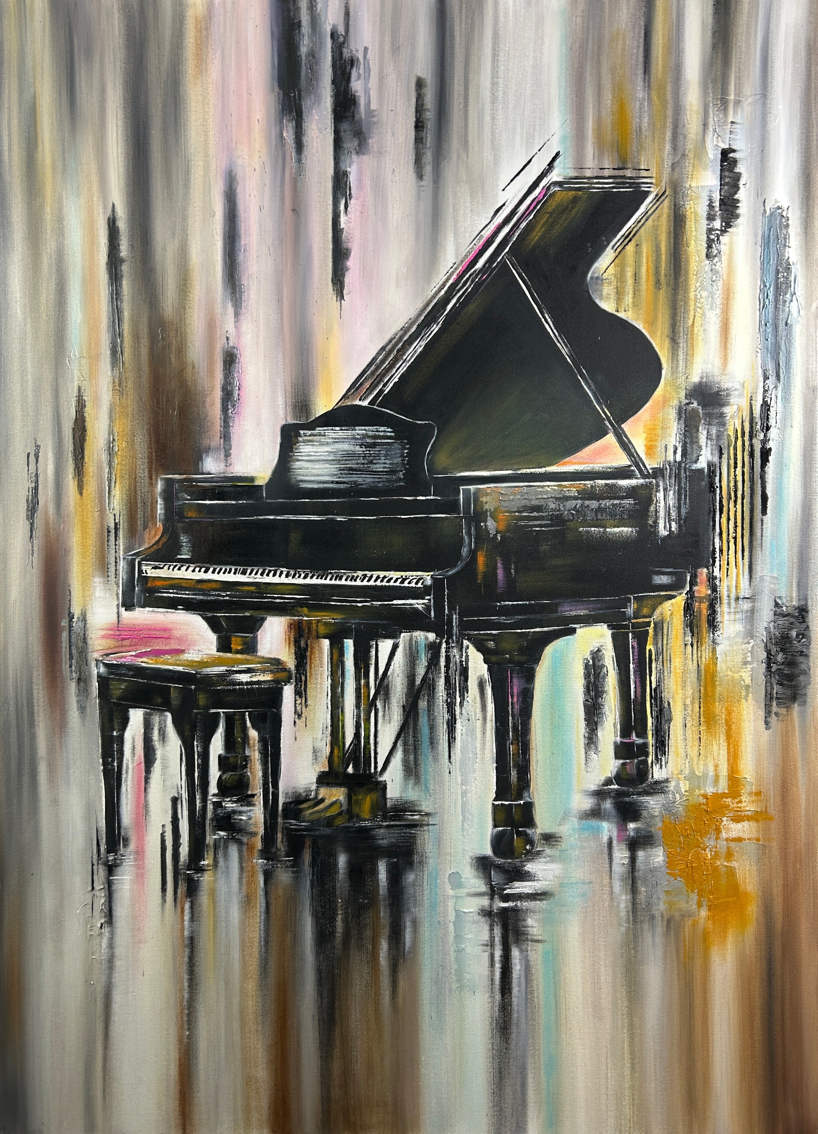 Gazing at a Grand piano gives me a sense of serenity and tranquility, and I possess a deep affection for music. My approach to using the piano in my art, suggests that solitude when chosen, can be a space of profound appreciation and personal fulfillment. While the exact interpretation of symbolism is subjective and depends on the viewer, my intention of using the piano is to convey solitude without loneliness, highlighting the potential for deep engagement with oneself, free from external pressures or social expectations.