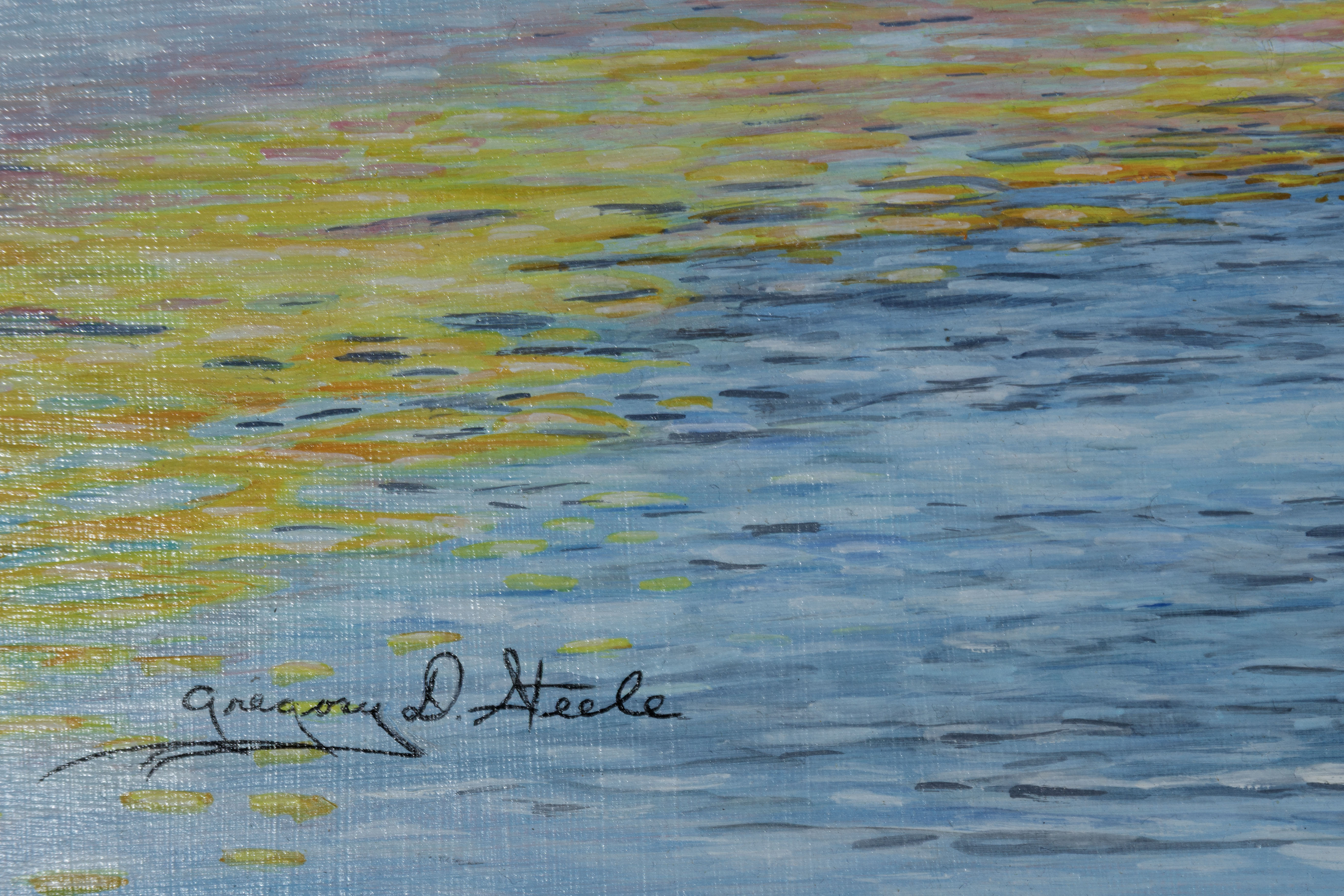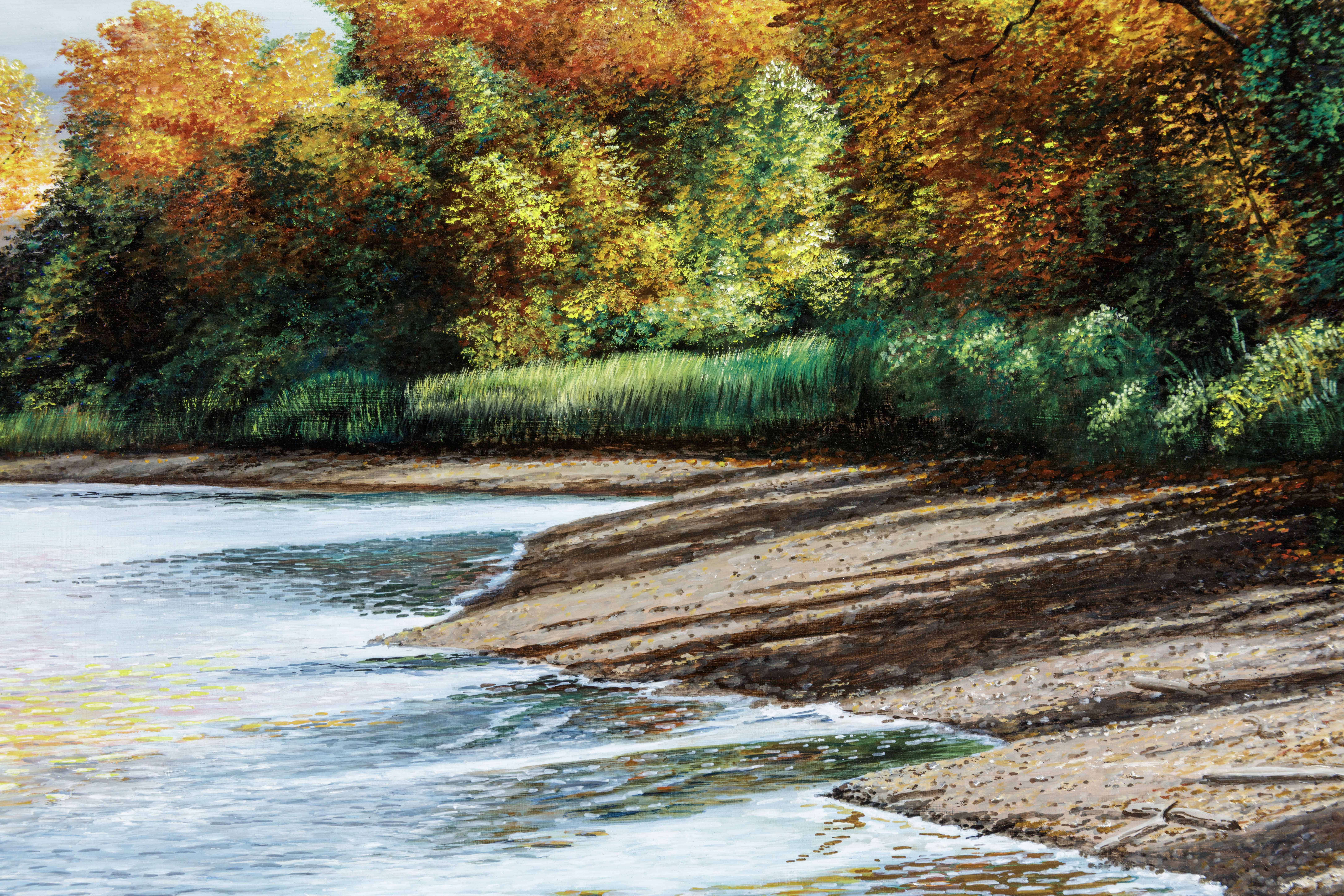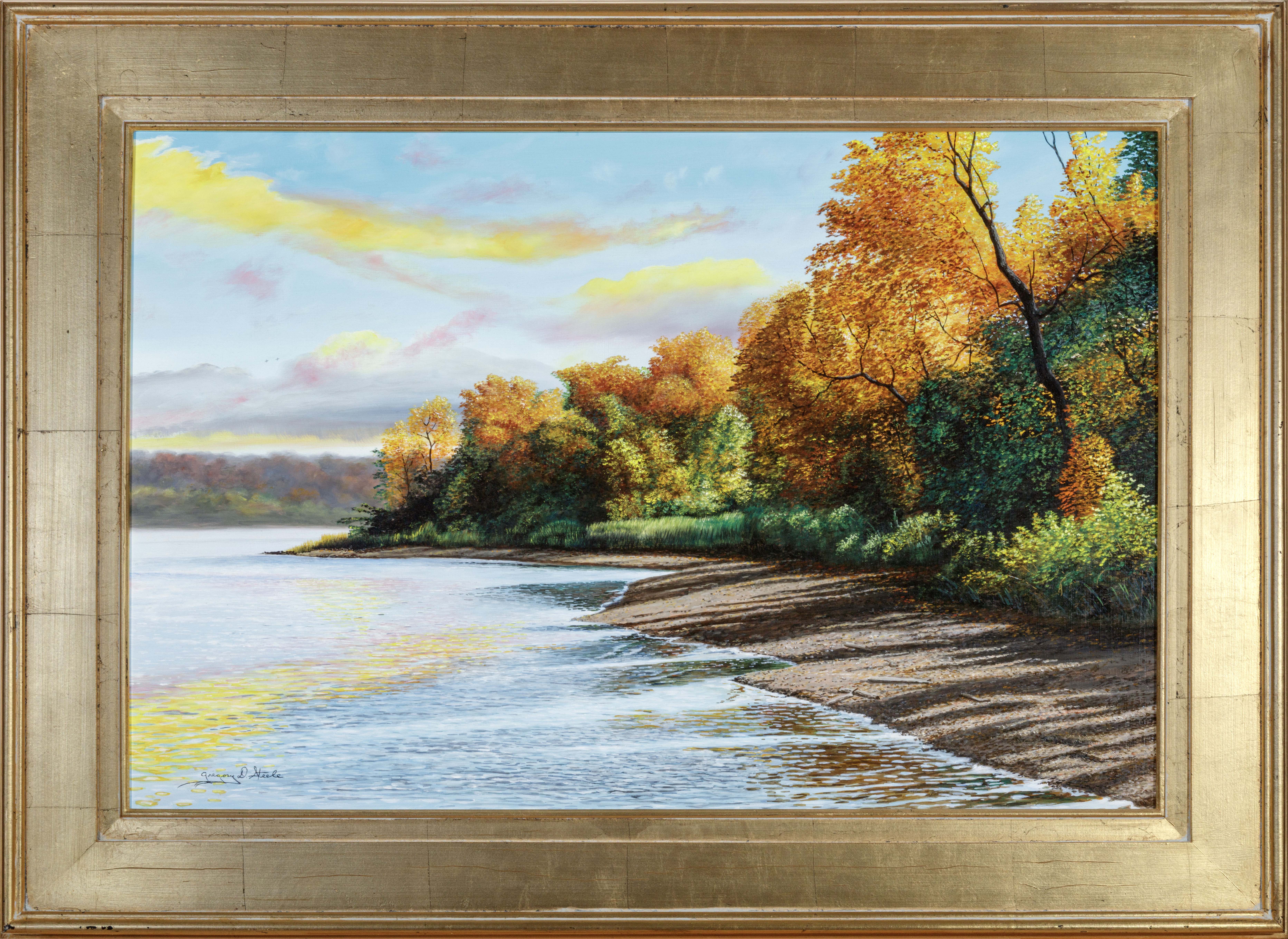 Gregory Steele was born and raised in a small western Illinois town twelve miles from the Mississippi river. Since 1969, he has lived in Davenport, Iowa because of the river. Both the river and the surrounding landscape have been a big influence on his art. At the age of 18, Steele became a professional artist as a cartoonist selling works to newspapers in northern Illinois and later went on to become a freelance illustrator. In 1992, he began dropping commercial clients to devote more time to his passion for creating paintings. Steele uses both color and detail to create a depth that pulls one into the painting. His main objective is to create a four-dimensional image on a two-dimensional plane, giving the illusion that one can walk into the painting to see what is on the other side. Steele’s paintings often stir a memory of a place or an event in the life of the viewer.